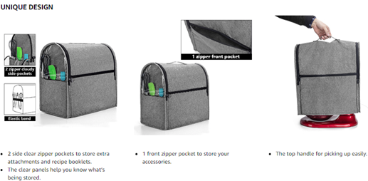 UNIQUE DESIGN: 2 side clear zipper pockets and 1 front zipper pocket to store extra attachments and recipe booklets. The clear panels help you know what’s being stored. The zipper design effectively keeps accessories away from dust.