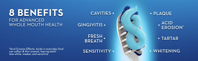Advance to a Healthier Smile and Stronger Teeth with Crest Pro-Health Advanced Antibacterial Protection. It provides protection against plaque bacteria to keep your mouth healthy and provide long lasting freshness. It is made with patented stannous fluoride and provides clinically proven protection. It provides 8 advanced benefits in 1, including: Fresh Breath, Whitening, Protection against Acid Erosion, Sensitivity, Cavities, Gingivitis, Plaque, and Tartar. Fights plaque bacteria associated with gingivitis . Acid erosion effects: Acids in everyday foods can soften and thin enamel, leaving teeth less white, weaker, and sensitive.
