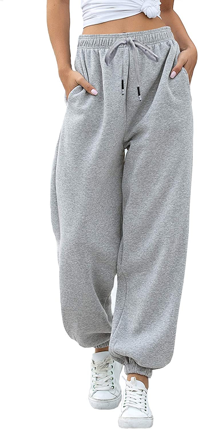 PULL-ON ELASTIC WAIST Sweatpants for women with pockets are an all-time favorite for comfort and value. Y2k vintage high waist sweatpants and black pants for women Slight stretch, Lounge pants Womens jogger Sweatpants can show the curve of your long legs very well.Loungewear for women Casual loose fit Lounge pants Womens jogger Sweatpants.