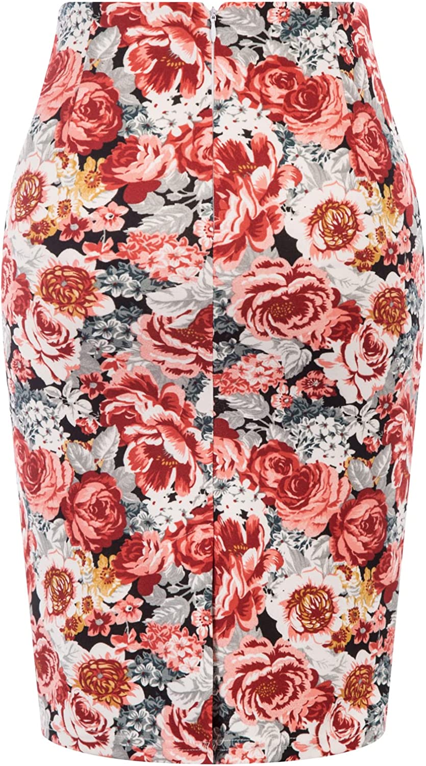Stretchy pencil skirt is super comfortable to wear and keep styles after washing. Elastic high waist design, concealed zipper in the back, back split at the base of hemline