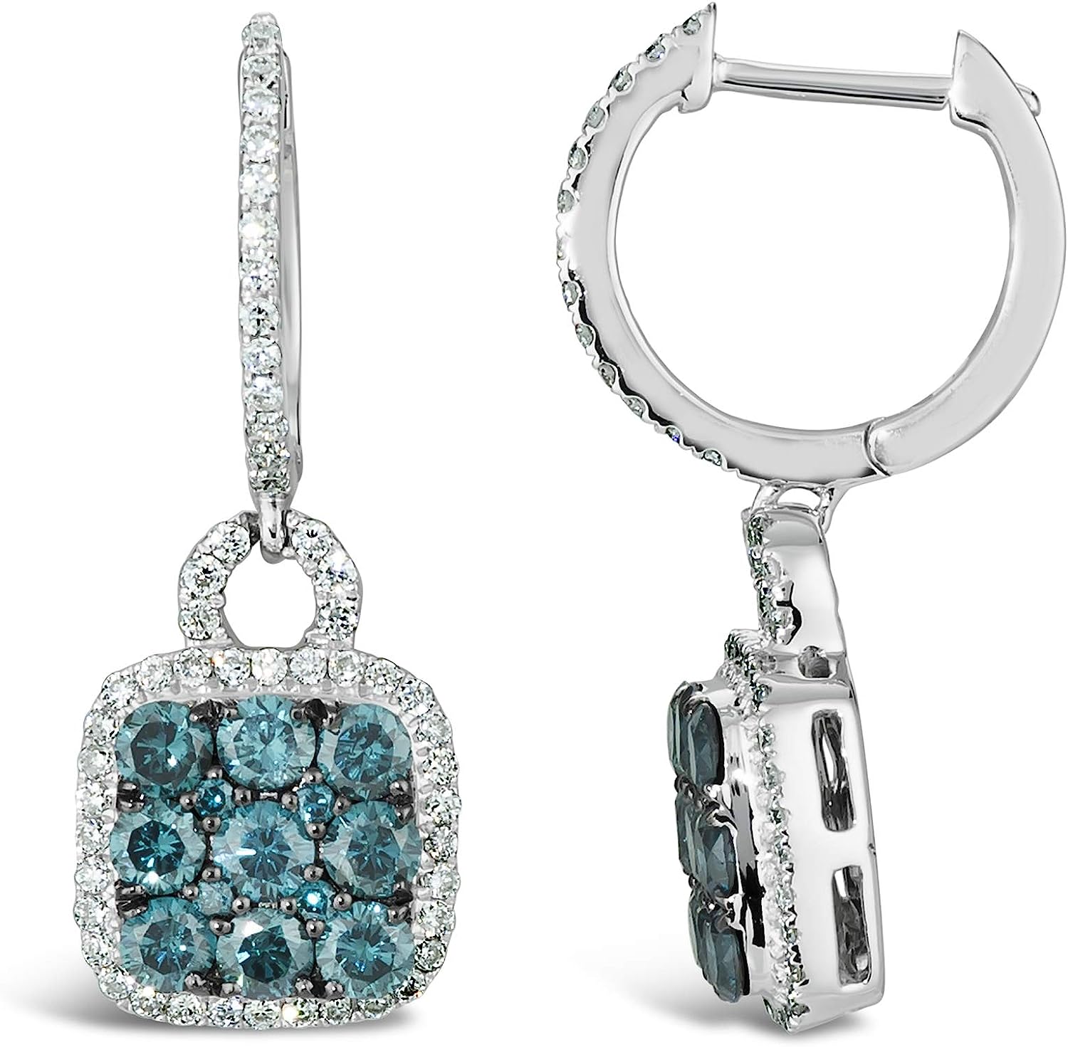 UNMISTAKABLE ELEGANCE - These glamorous handcrafted 14k white gold dangle earrings by Le Vian 1 1/4 carat white and blue diamonds. These earrings feature huggie latch back for comfortable and secure wear all day long. These striking earrings are the subtle statement piece you’ve been looking for