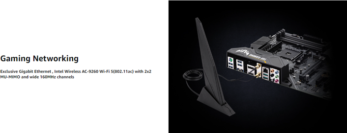 • Gaming Networking: Exclusive Realtek L8200A Gigabit Ethernet, Intel 2x2 802.11ac Wi-Fi with MU-MIMO support, Bluetooth 5.0, TUF LANGuard and technology