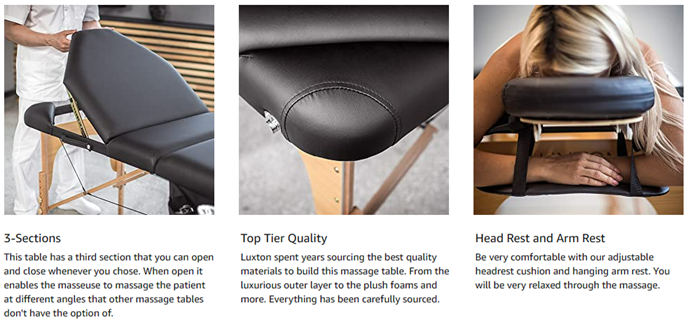THREE SECTION - This is a 3-Section Massage Table which enables you to receive or give massages at many more angles than the standard massage bed. You can lift up the third section and adjust and lock it at countless angles to ensure the optimal angle for any form of massage or therapy desired. Truly unique and customizable. Not to mention it is very easy to do this in moments.