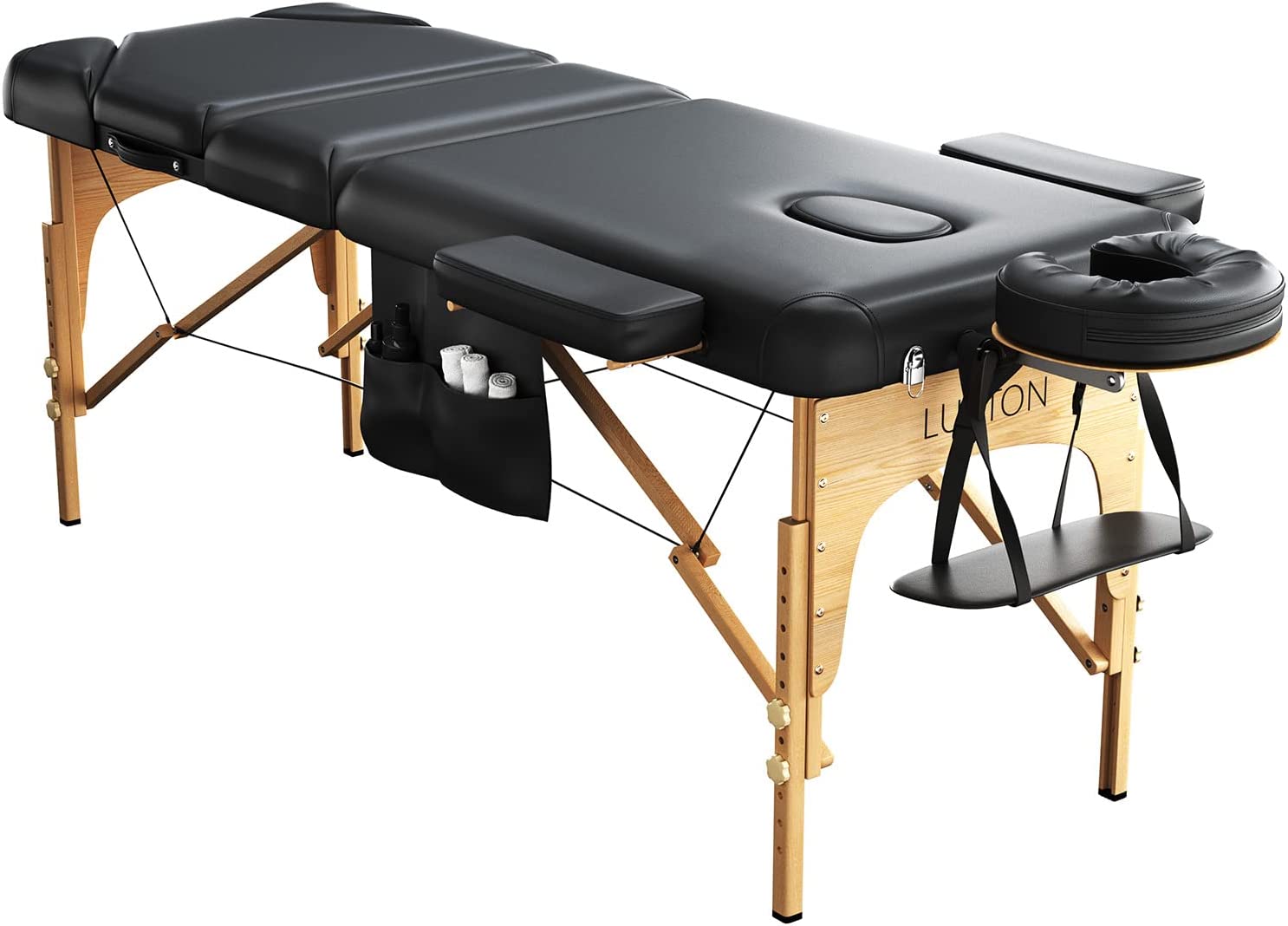Luxton Home 3-Section Premium Memory Foam Massage Table with Rolling Carrying Travel Case - Easy Set Up - Foldable & Portable - Adjustable Height, Head Cradle, Hanging Arm Rest, & Side Storage Pocket