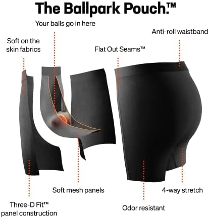 - BALLPARK SUPPORT: Our boxer briefs come equipped with the patented BallPark Pouch to reduce friction and keep your man-parts in place with breathable mesh panels for chafe-free comfort and the best performance.