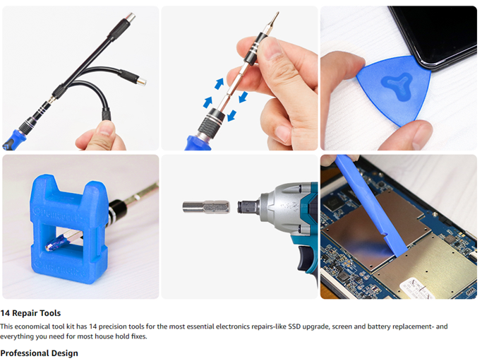 - 【Compact & Portable】All repair tools are stored in a plastic case(LxWxH: 9.44"x4.33"x1.10"), offering a whole protection and organized storage, no more worry about losing and messing up anything. The case is light and handy, easy to carry out, or placed in the house, office, car, drawer and other places