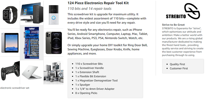 - 【Variety & Versatility】This screwdriver set has 110 different bits(Phillips, Flat Head, Torx, Torx Security, Pentalobe, Hex, Gamebit, etc), which is useful for laptop, PC building, cell phone, tablet, MacBook, iPhone, iPad, game consoles/controller, Ring doorbell, sewing machine, HVAC, knife and more. This is the toolkit every DIYer, fixer, hobbyist, and professional needs to tackle any job, also a decent gift for your families, friends, colleagues, etc
