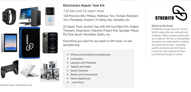 - 【Wide Application】This precision screwdriver set has 120 bits, complete with every driver bit you’ll need to tackle any repair or DIY project. In addition, this repair kit has 22 practical accessories, such as magnetizer, magnetic mat, ESD tweezers, suction cup, spudger, cleaning brush, etc. Whether you're a professional or a amateur, this toolkit has what you need to repair all cell phone, computer, laptops, SSD, iPad, game consoles, tablets, glasses, HVAC, sewing machine, etc