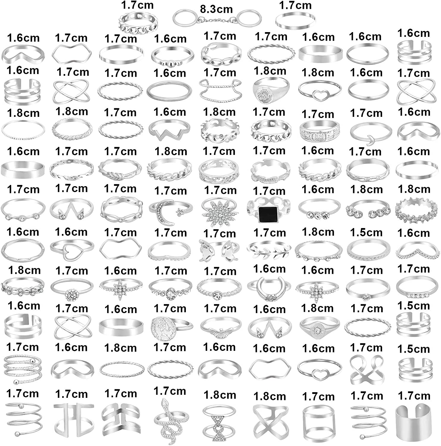 DESIGN - These rings set for women and men has various styles: simple ring, crystal ring, criss ring and rope ring, etc, which can be matched with all kinds of clothes. You will be attractive when you wear them.