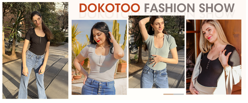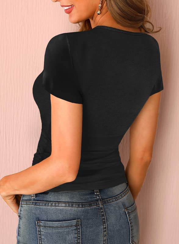 Dokotoo Womens Basic Ribbed Low Cut Button Down Tight Slim Fitted Tee Tops T Shirts