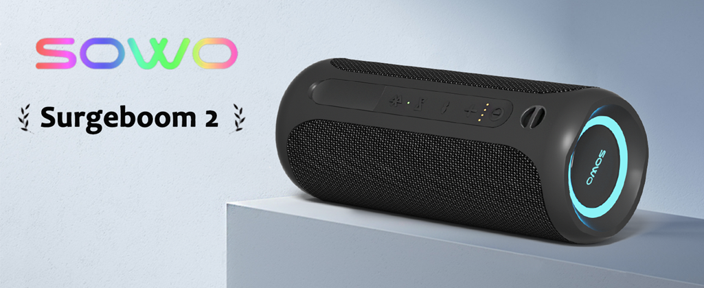 - [BRILLIANT SOUND WITH RGB COLORFUL LIGHT]: SOWO speaker Bluetooth wireless based on advanced DSP technology, surgeboom 2 is equipped with 25w stereo audio drivers and two wide bass passive radiators, which perfectly achieves stereo sound effect and high volume output. The radiator is also loaded with cool LED lights with dual 256-level brightness display.