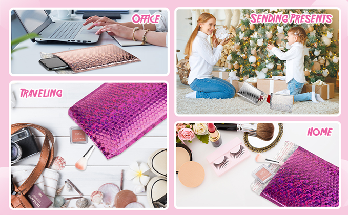 Multiple applications: these glamorous packaging envelopes can be applied in the offices, at home, in the shops, at schools; They are great for packing cell phones, electronics, gifts, holiday orders, invitation and greeting cards, books, makeup stuff, cosmetics, essential oils, jewelry, accessories, etc.