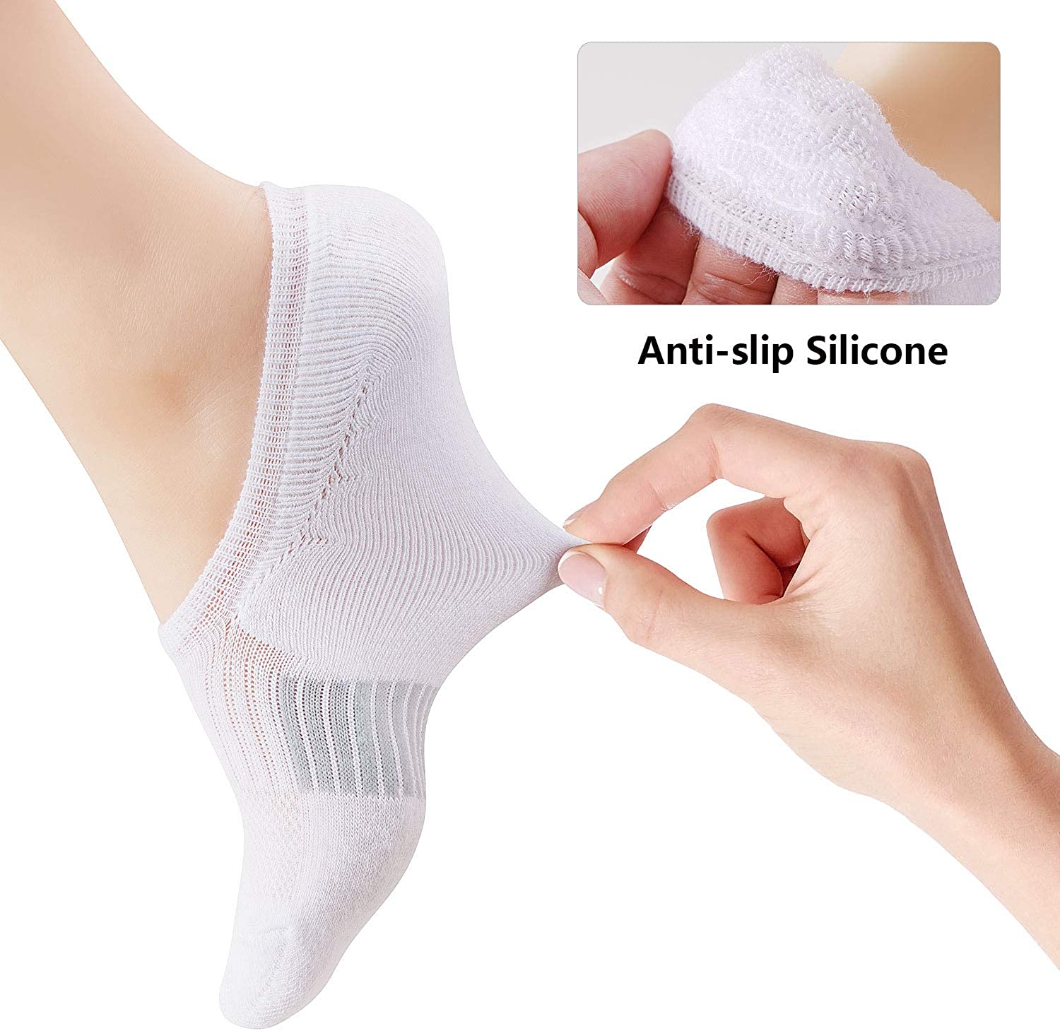 ARCH SUPPORT & CUSHION SOCKS - Upgraded cushion sole covers the entire bottom of the no show socks. Provide maximum cushioning space for the foot, reducing friction in sports or daily activities. Proper compression of the arch will keep your arch safe and stable while reinforced heel and toe provide outstanding durability.
