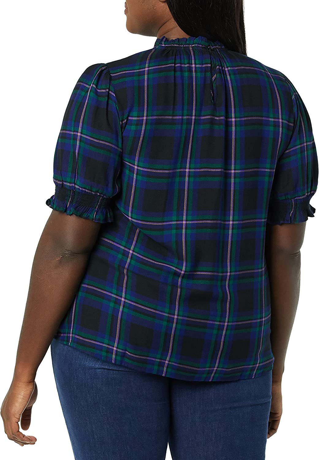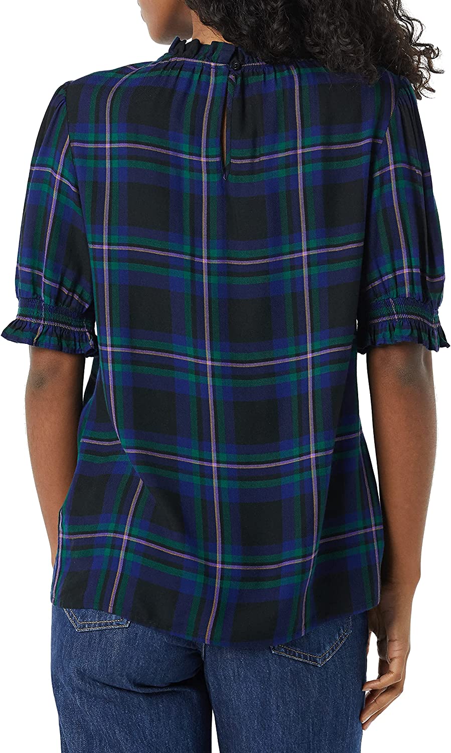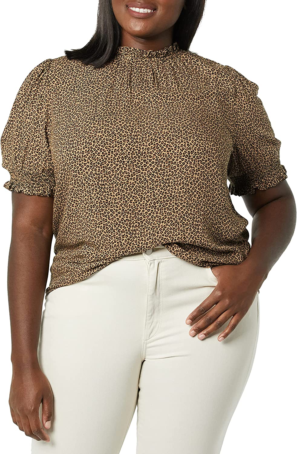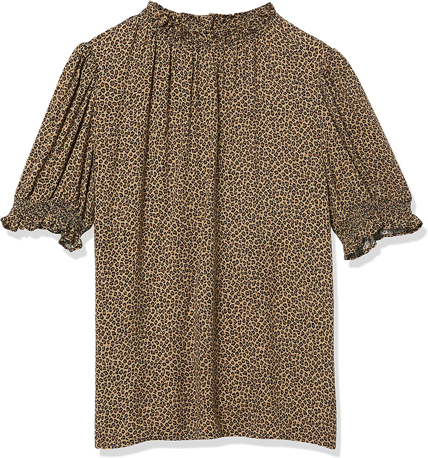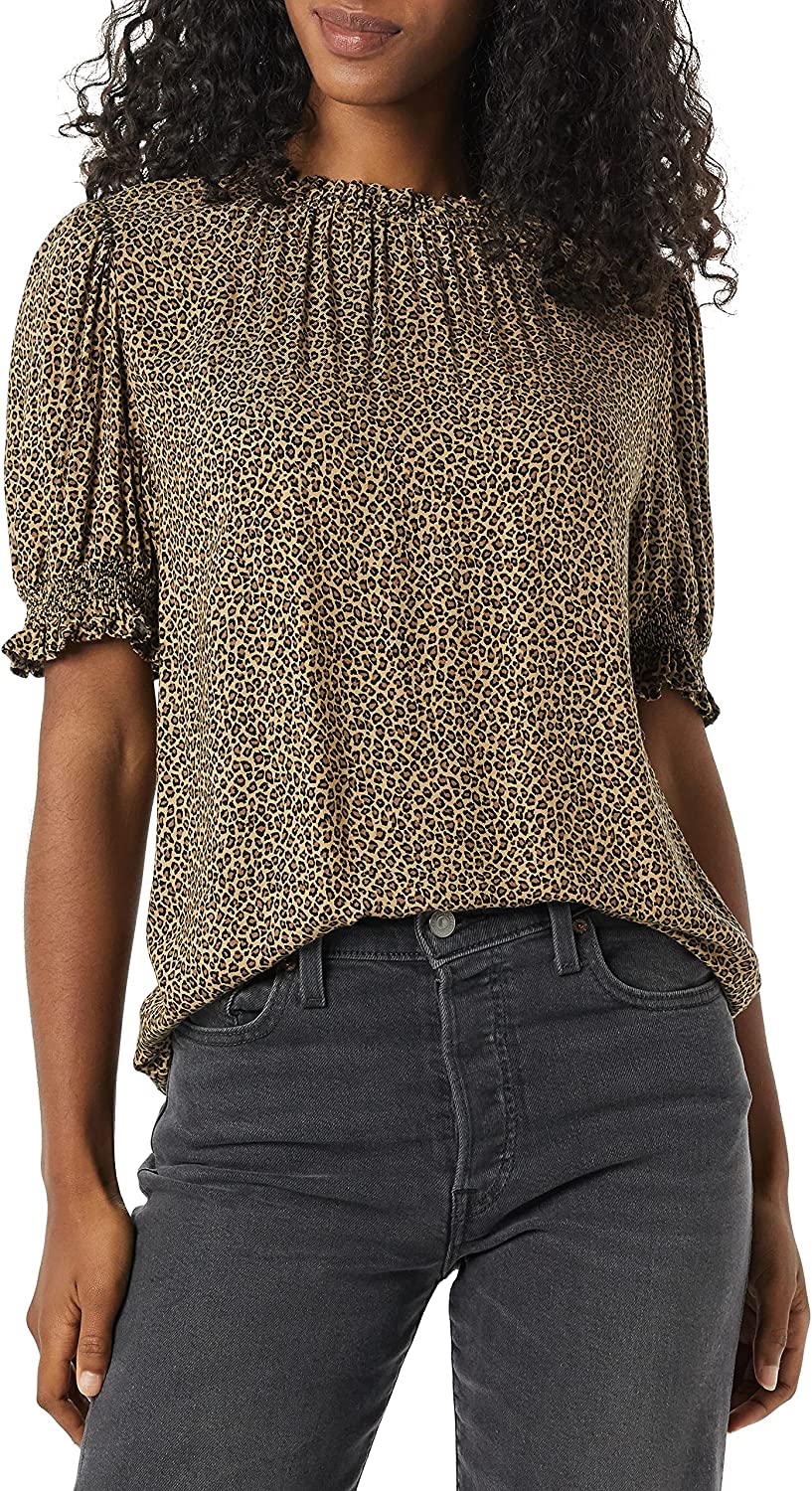 Amazon Essentials Women's Fluid Twill Short Puff Sleeve Smock Detail Shirt