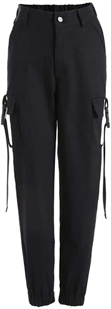 VANGULL Women's High Waisted Jogger Pants Casual Flap Pocket Solid Outdoor Cargo Pants Black