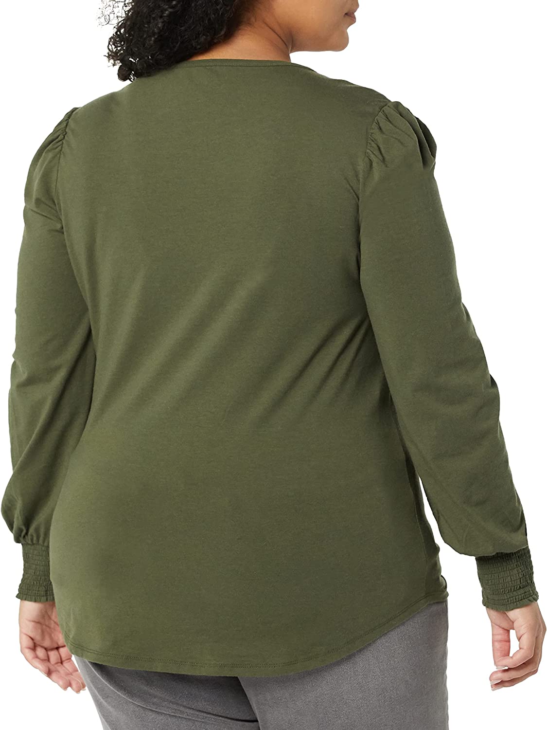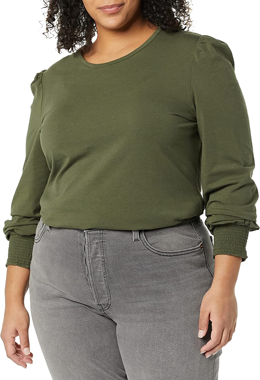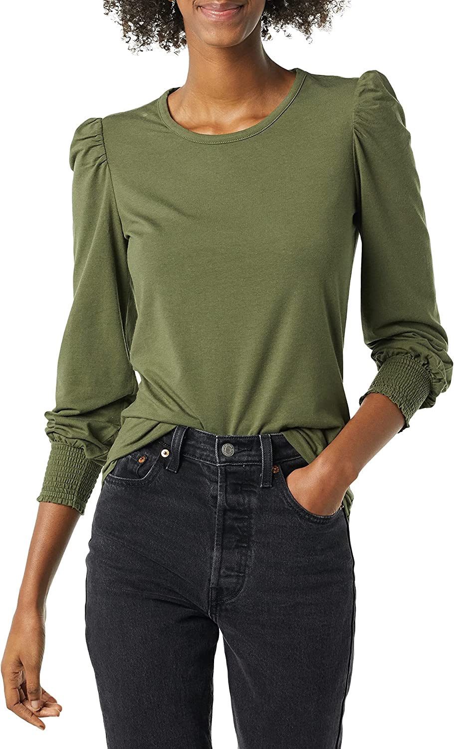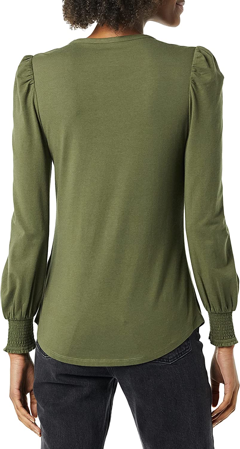 Amazon Essentials Women's Long-Sleeve Crewneck Smocked Cuff T-Shirt