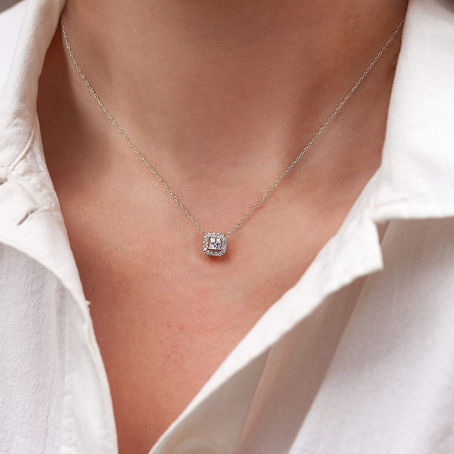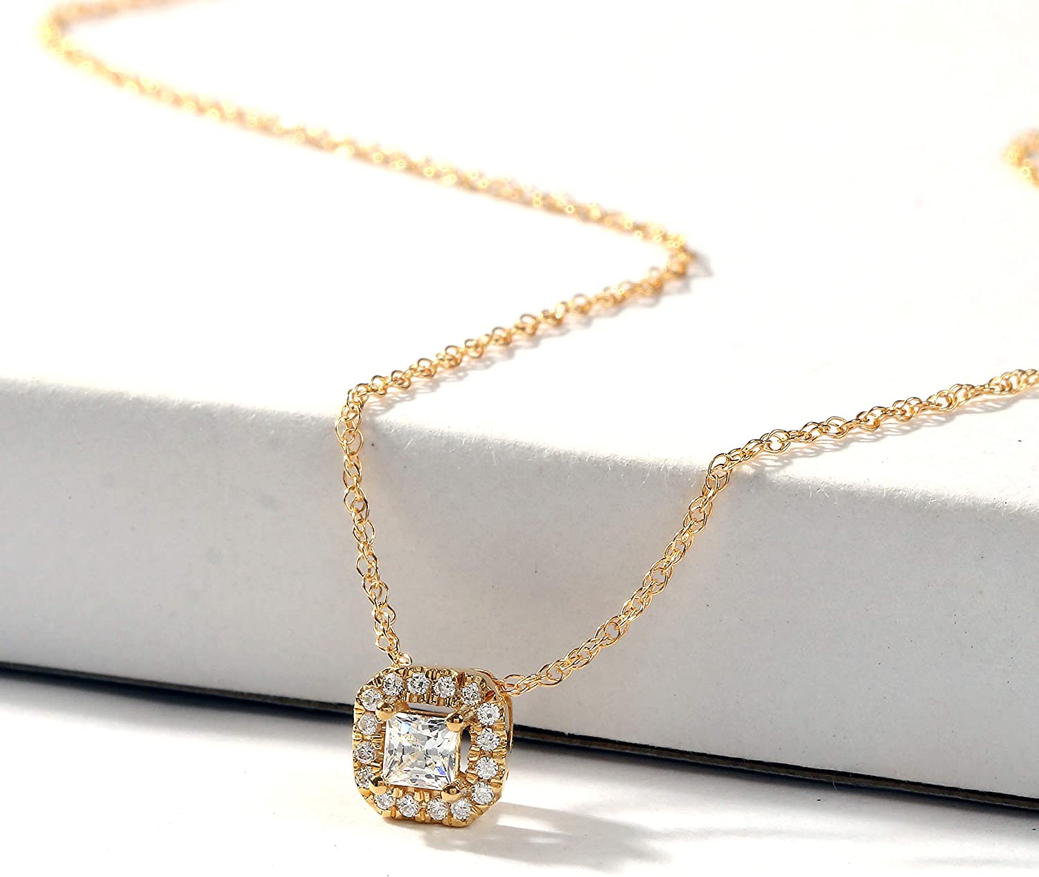 Amazon Collection 14k Gold 8mm Cushion Cut Gemstone Pendant Necklace for Women with 18 Inch Box Chain