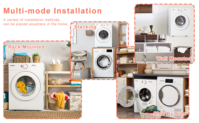 - 【Multi-function】 Our electric clothes dryer has easy-to-operate knobs and seven drying modes: COOL DOWN (0-20mins): for delicates; WARM (30-120mins): standard drying; HOT (120-200min): drying bulky loads; ANTI-WRINKLE (30-60min): wrinkle prevention; AIR DRY (0-80mins); INTELLIGENT: Portable dryer can adjust the heating time according to humidity; ECO MODE: Save energy.