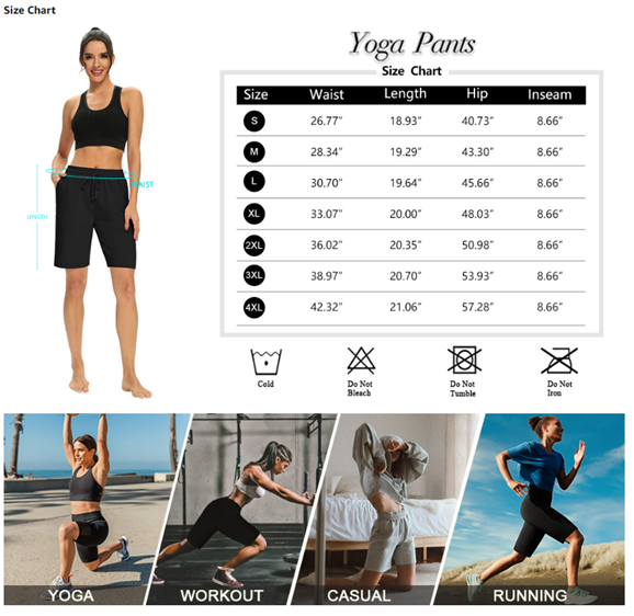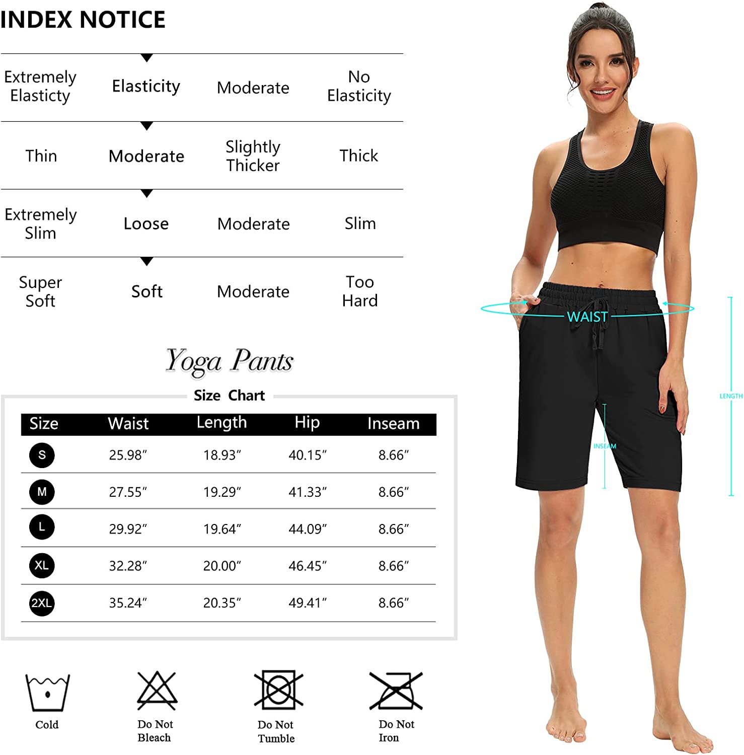 Shorts with 3 Pockets: Women’s yoga shorts have nice two pockets and butt pocket that are large roomy enough for your keys and phone, without falling out. Loose lounge shorts ware not too short and too long, perfect length Inseam-8.66”for exercising