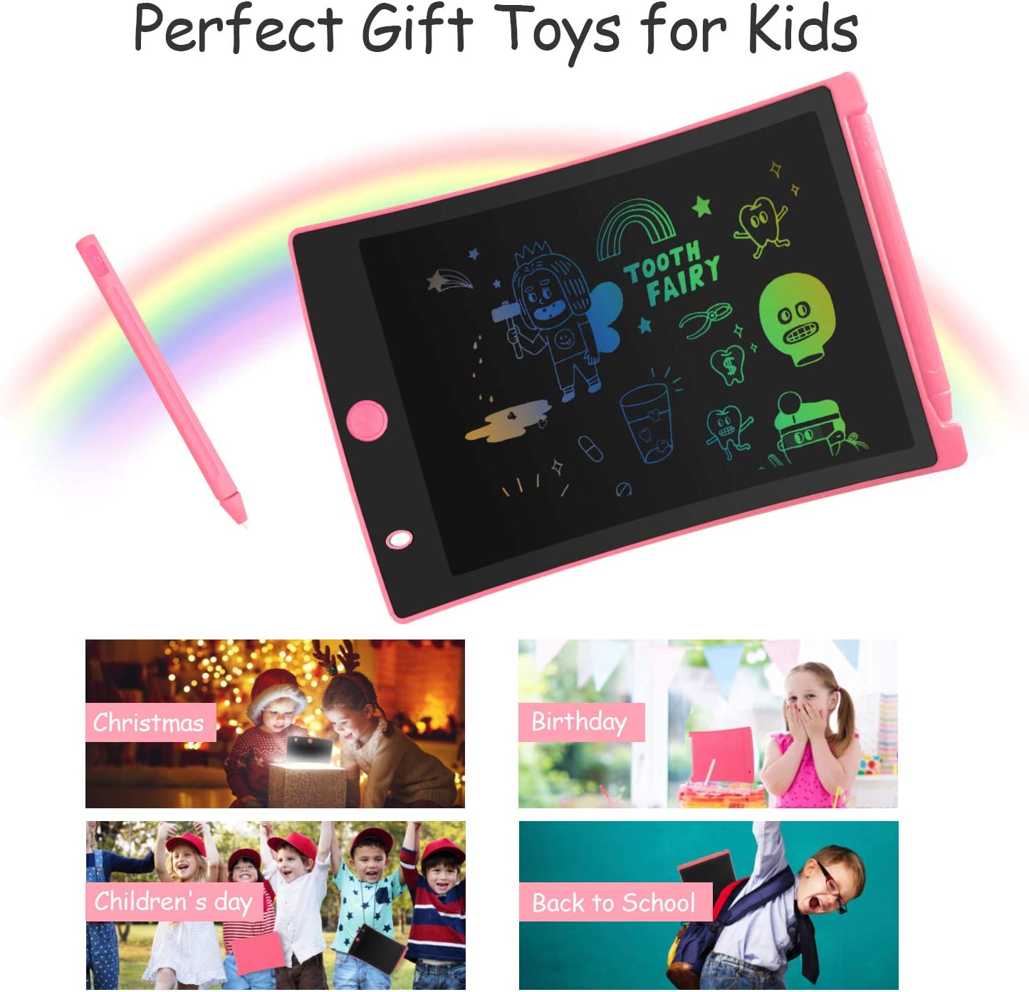 - EYE PROTECTION -- The kids' electronics writing tablet adopt lcd screen, no radiation, no glare, Its safe and comfortable when children use for a long time. Your kids can freely release their natural instincts