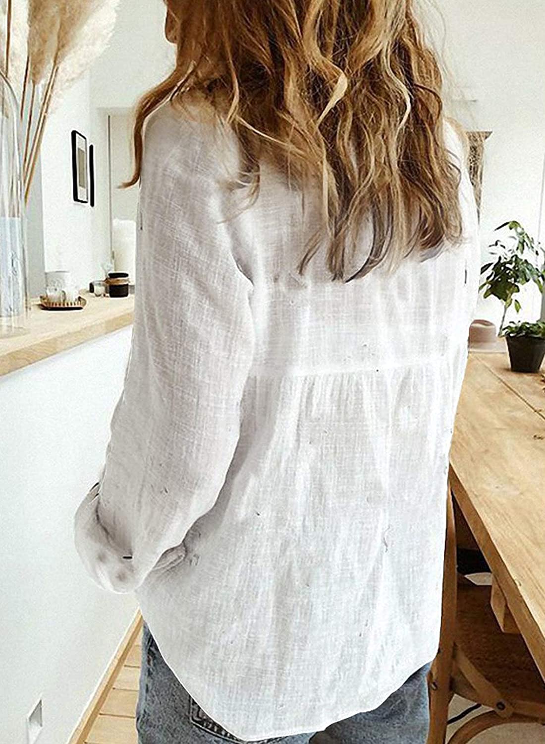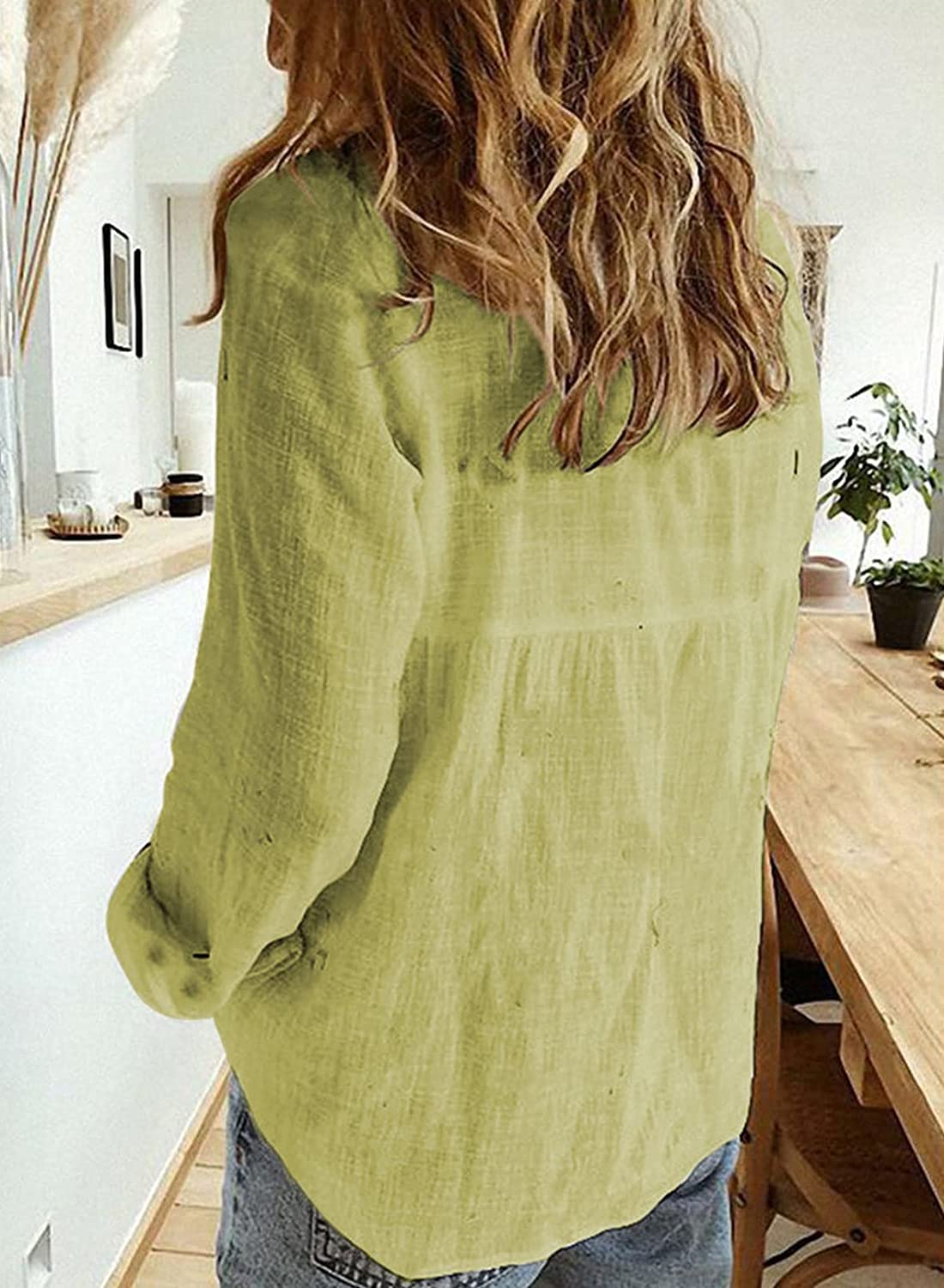 Astylish Womens V Neck Roll up Sleeve Button Down Blouses Tops