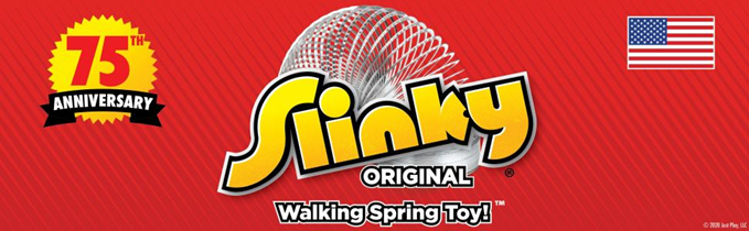 There’s only one Original Slinky Brand! Celebrate 75 years of wiggly-jiggly fun with Slinky! Generations of children and adults have loved playing with Slinky. This classic metal spring toy walks downstairs, alone or in pairs, and makes a slink-ity sound. First invented by mechanical engineer Richard James in 1943 during an experiment with tension coils. James accidentally dropped a spring on the floor and watched as it began to “walk.” Two years later, he introduced his walking spring toy in Gimbels Department Store during Christmas, and the Slinky immediately sold out. Since its debut, over 300 million Slinkys have been sold worldwide. In 2000, this classic toy was inducted into the National Toy Hall of Fame. Made 75 years ago, Slinky continues to be a favorite toy of children and adults all over the world. Slinky is fun for a girl or a boy and makes an ideal gift, stocking stuffer, prize, or present. Everyone loves a Slinky! Ages 5+.
