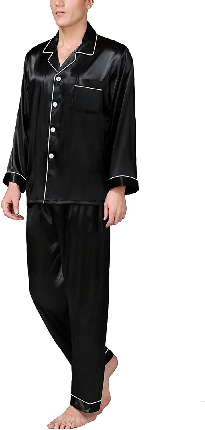 - DESIGNED FOR LUXURIOU & COMFY: The High-Quality Satin Men's Pajama Set has a full button-down front Sleepshirt that is easy to get on and off, features a front pocket on the chest. The elastic waist PJ bottoms make relaxing as comfortable as possible