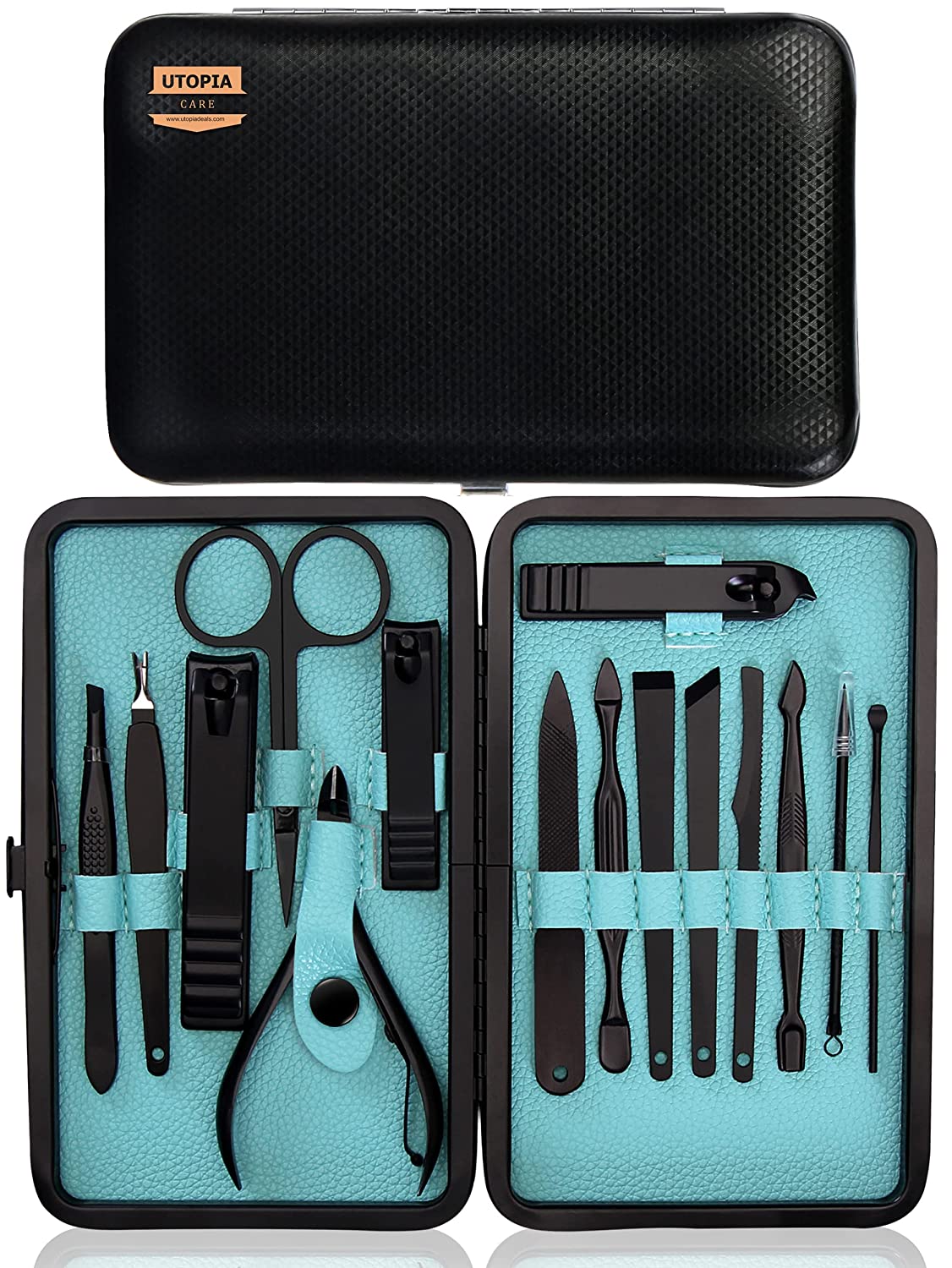 Utopia Care 15 Pieces Manicure Set - Stainless Steel Manicure Nail Clippers Pedicure Kit - Professional Grooming Kits, Nail Care Tools with Luxurious Travel Case (Black)