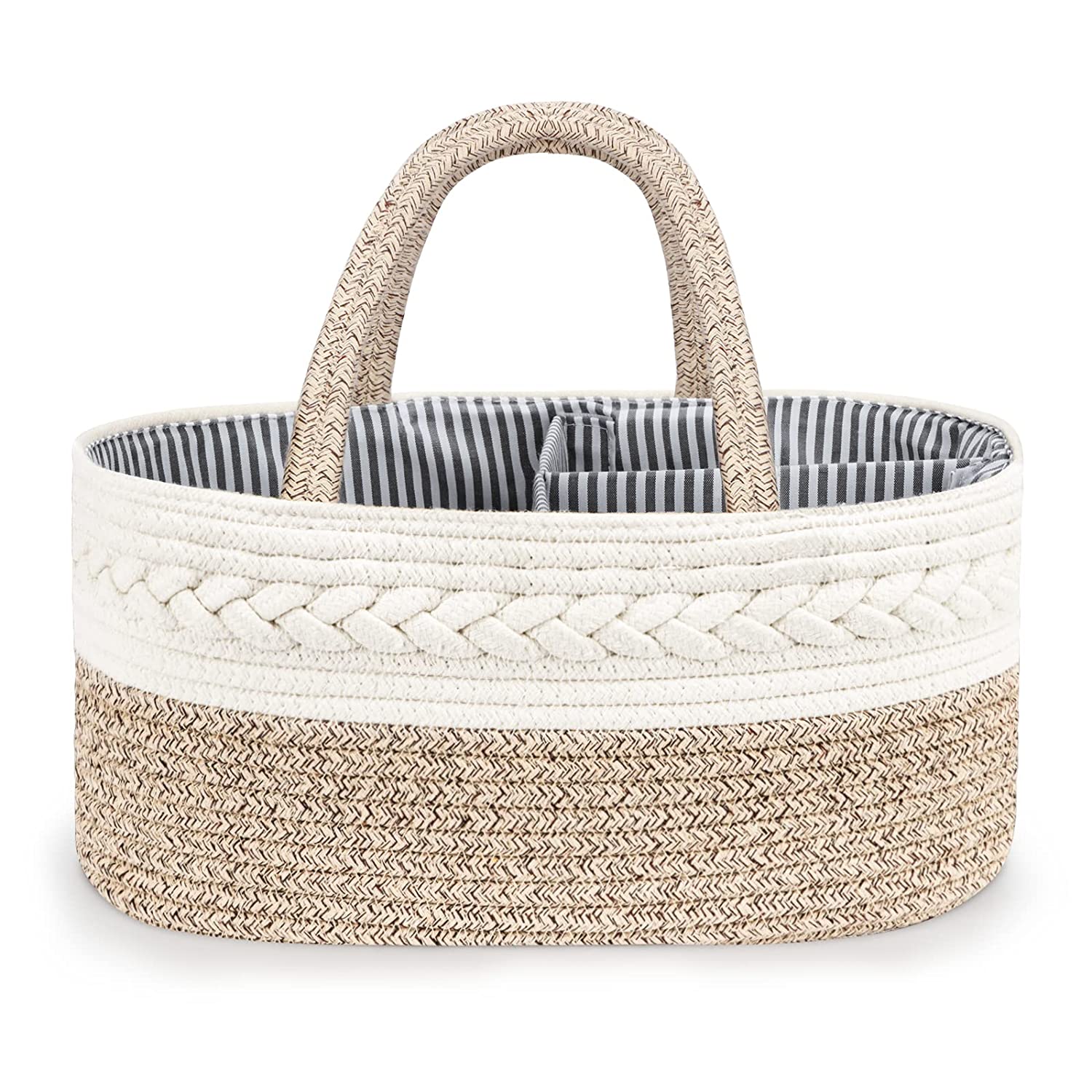 Practical Design-Updated with longer handles, easy to move the baby diaper caddy around the house. Designed with a removable divider, you can create compartments in the baby caddy organizer or remove the divider and use the baby basket for any number of things.