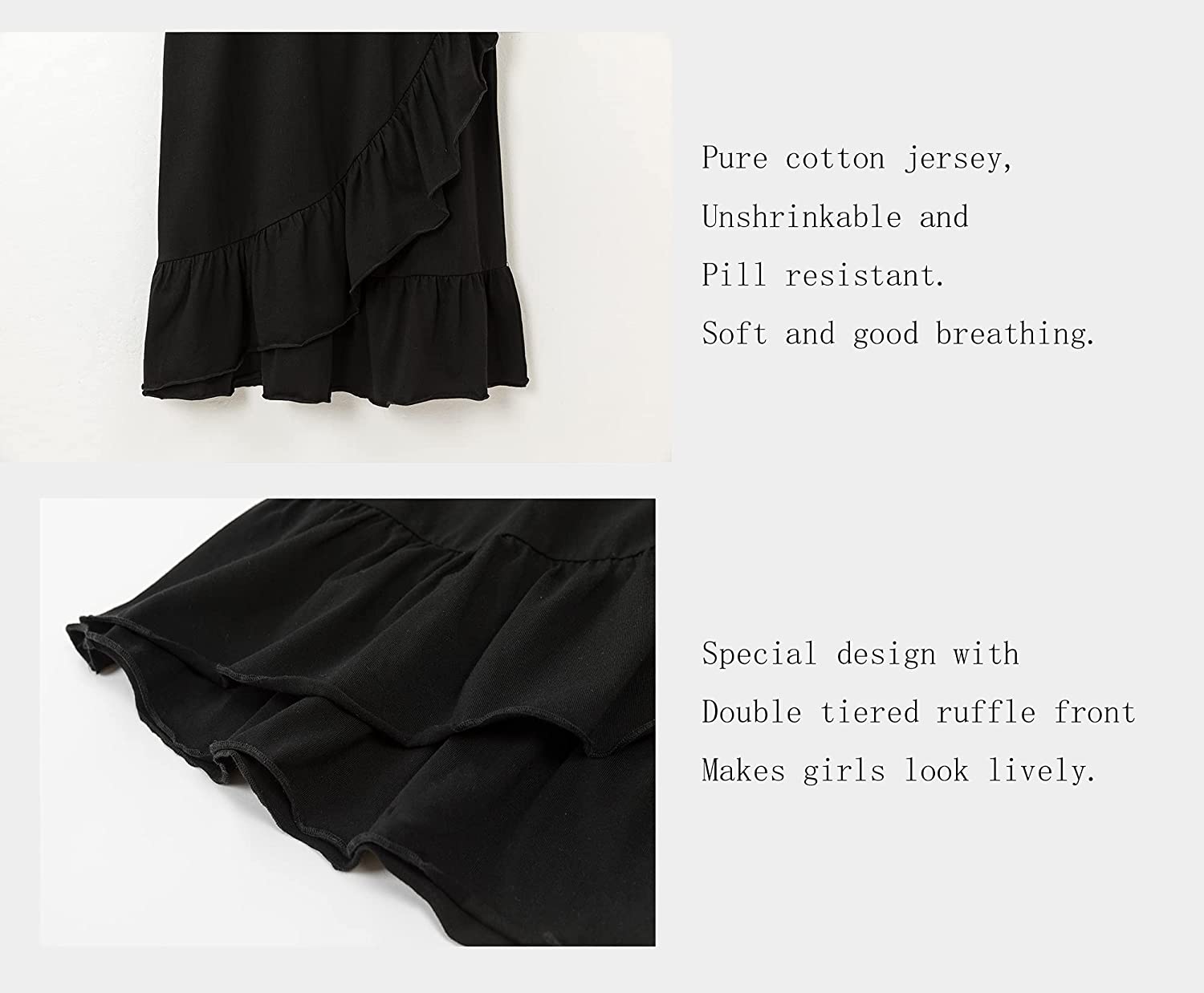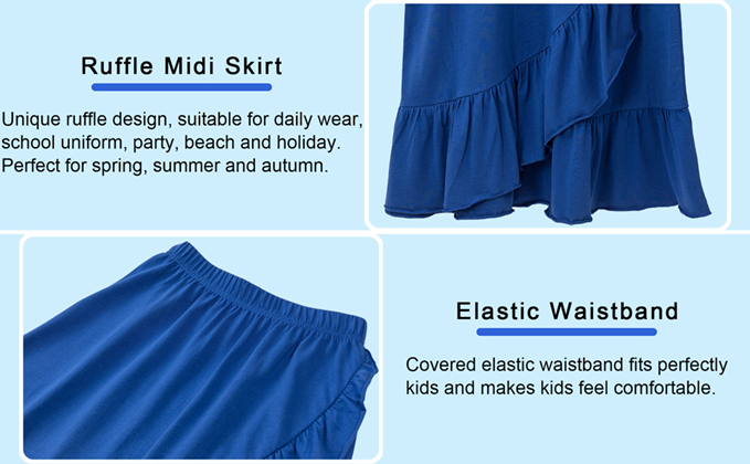 Special design with double tiered ruffle front which makes girls look lively. Covered elastic waistband can perfect suit your waist and makes you feel comfortable.