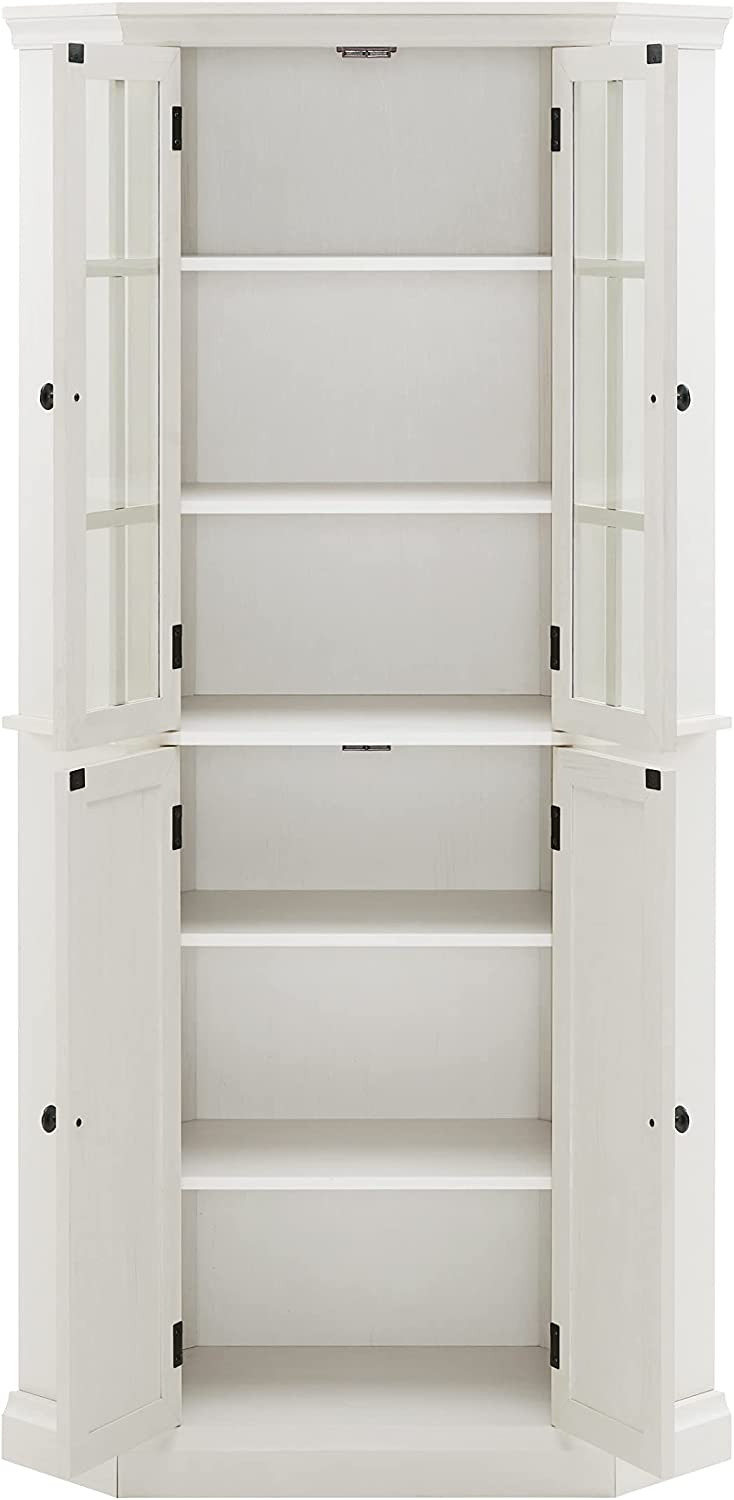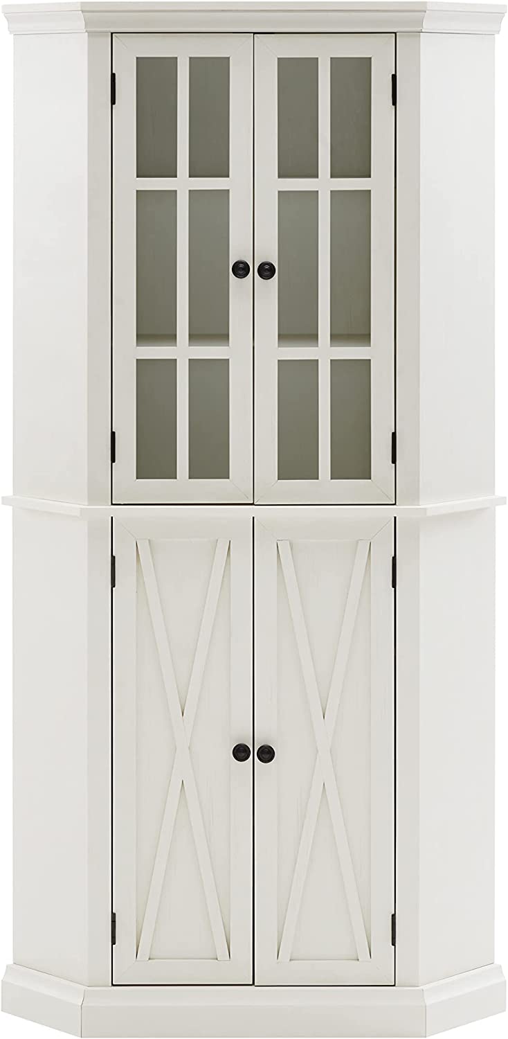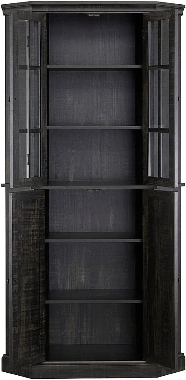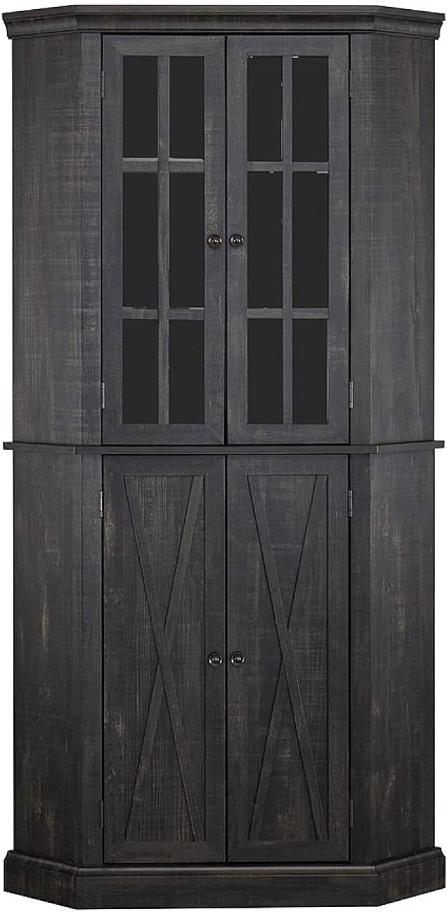 The base of this unit features two wood doors with barn look and four shelves for any other items you need to store