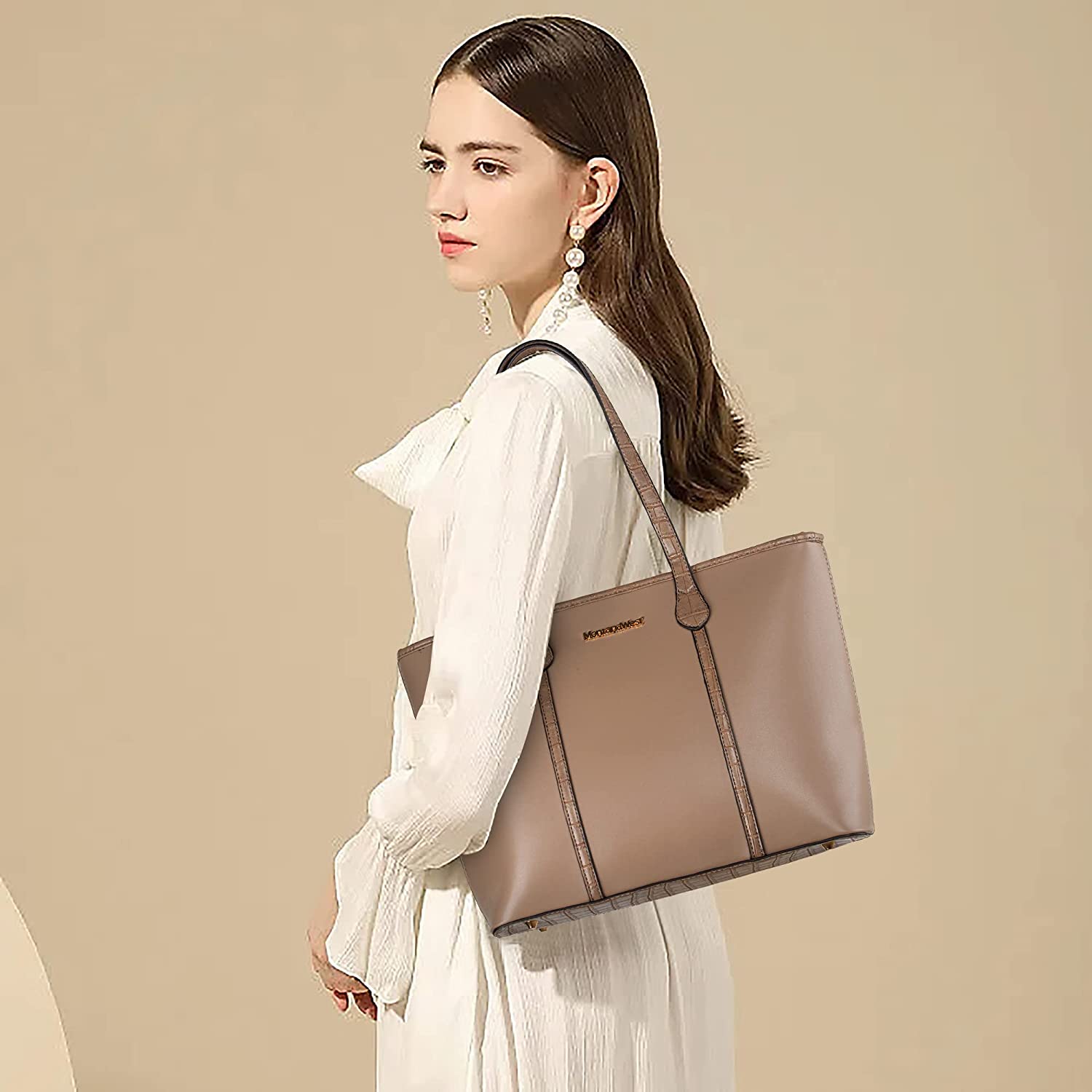 MATERIAL: Crafted from buttery smooth PU leather (light-weight distressed-look) with soft fabric lining. This classic handbag is the effortlessly Tote you'll want to have and rely on for the rest of the time. It's simple yet elegant and spacious enough to carry your laptop or iPad.