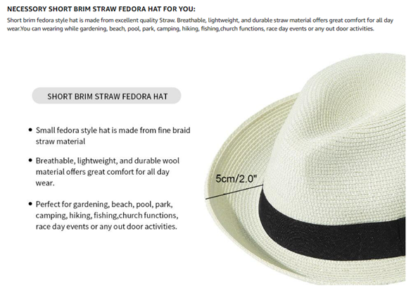 Available in two sizes, our Straw Fedora Hat is designed to fit most head sizes. The Medium Size 57-58.5cm (Fit for 22.5"-23") and Large Size 58.5-60cm (Fit for 23"-23.6") provide a perfect fit for both men and women.