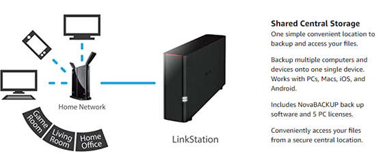 Buffalo's LinkStation 200 series network-attached storage is a reliable, easy-to-use data storage and personal cloud solution that is purpose-built for simplicity and security. This NAS server allows you to store your most important data in a centralized location and access it from anywhere. For ease-of use, you can simply connect the home server to your wireless router and access it anywhere from your home or even remotely. Easily back up multiple computers (Windows and macOS) and mobile devices (Android or iOS) to the same secure NAS storage location, and use Buffalo's WebAccess service to create a free personal cloud. Bypass monthly cloud subscription costs and enjoy on-the-go file access and sharing anytime, anywhere over the Internet, even through your mobile device.