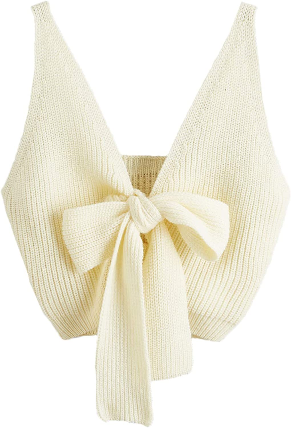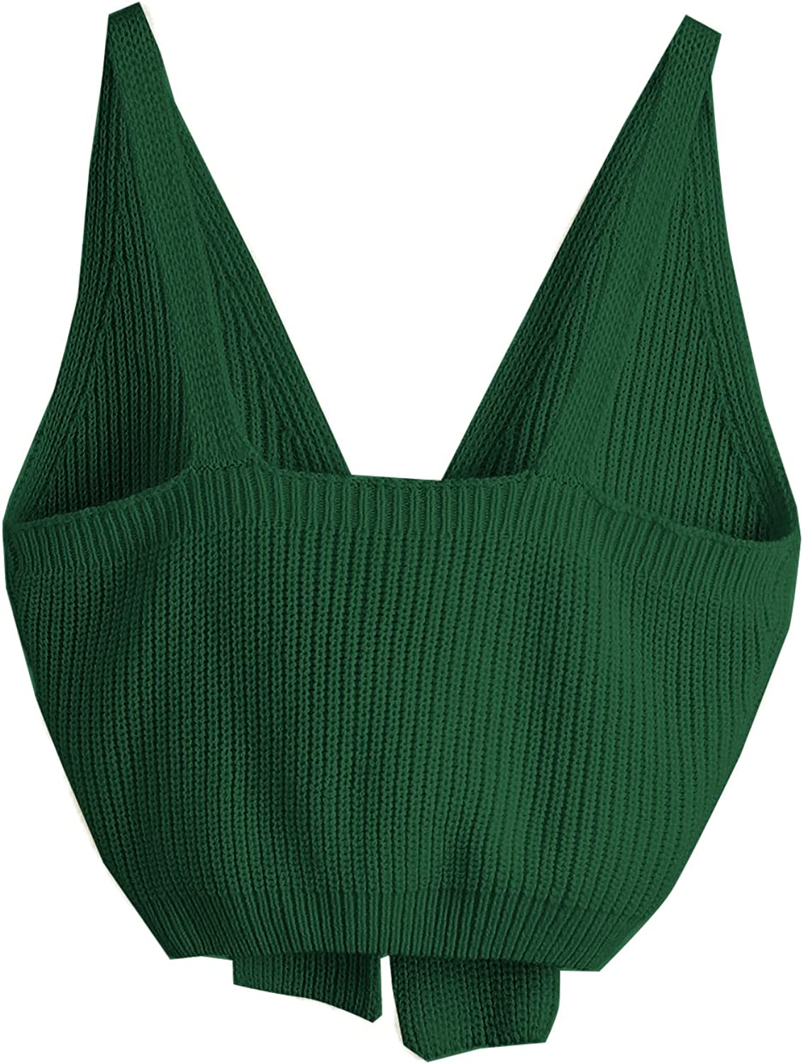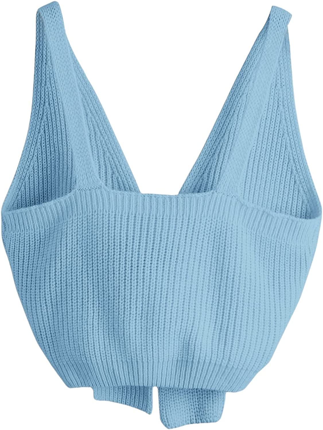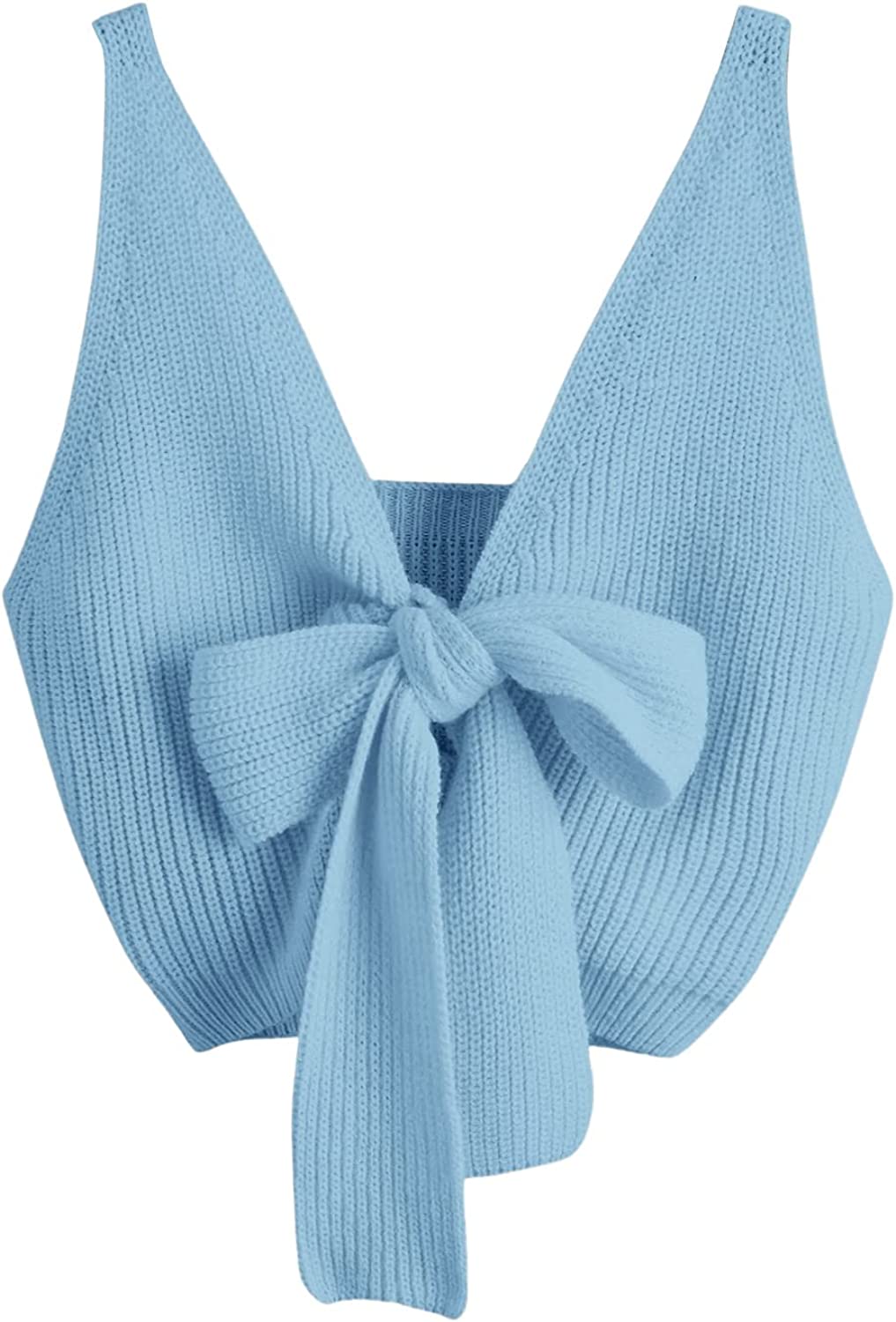 SweatyRocks Women's V Neck Tie Front Sleeveless Knit Crop Cami Tank Top