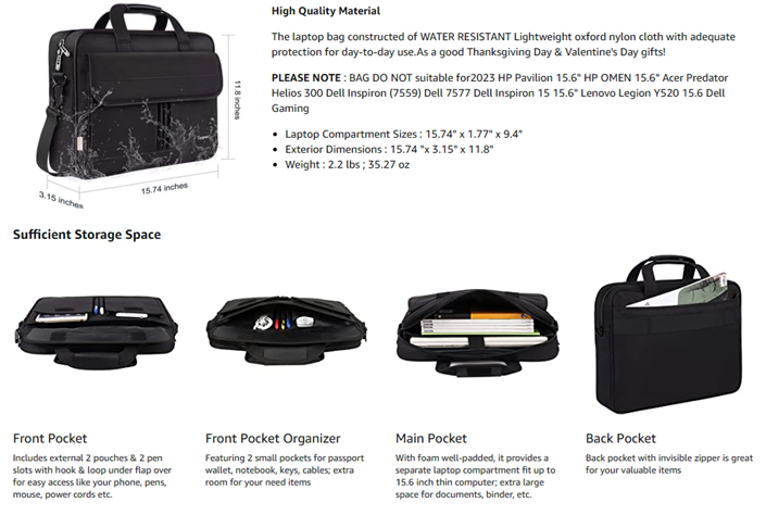 - External Dimension: 15. 74 " x 3. 15" x 11. 8" (L x W x H) features a dedicated well-padded Laptop compartment with Hook & Loop, computer cases for laptops perfect for 15. 6 inch laptops Apple MacBook, Chromebook, HP Specter, Lenovo ThinkPad, Fujitsu, Asus, Samsung, Sony, Toshiba, ASUS N580VD-DB74T Vivo Book Pro, ASUS FX503VM Gaming, Acer Aspire e15, Acer Aspire v15. PLEASE NOTE: THE 15INCH LAPTOP BAG DO NOT suitable for 15. 6" HP OMEN 15. 6" Acer Predator Helios 300 Dell Inspiron 15