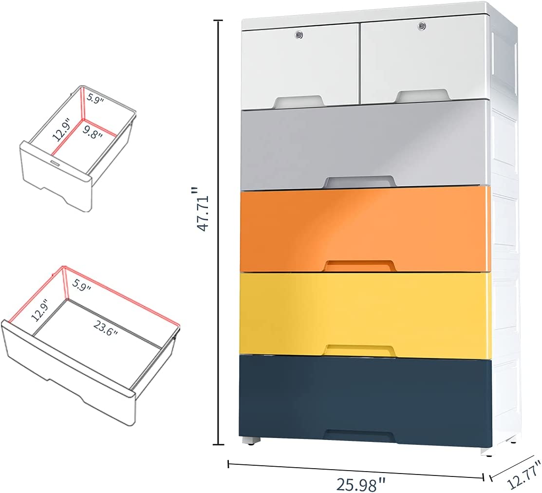【6 DRAWERS ORGANIZER】Features 4 large drawers and top 2 small cabinets locker,6 drawers for large storage space.Storage cabinet on wheels made it easily to move anywhere you want