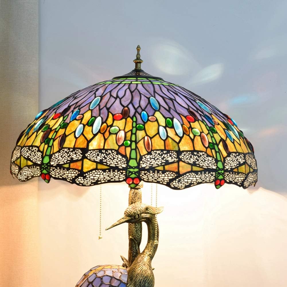 Handmade Stained Glass Table Lamp 18" Tiffany Style Large Table Lamp Dark Red Blue Dragonfly Desk Lamp Creative Antique Light Base for Living Room Study Bedroom Table Lamp (Color : Female)
