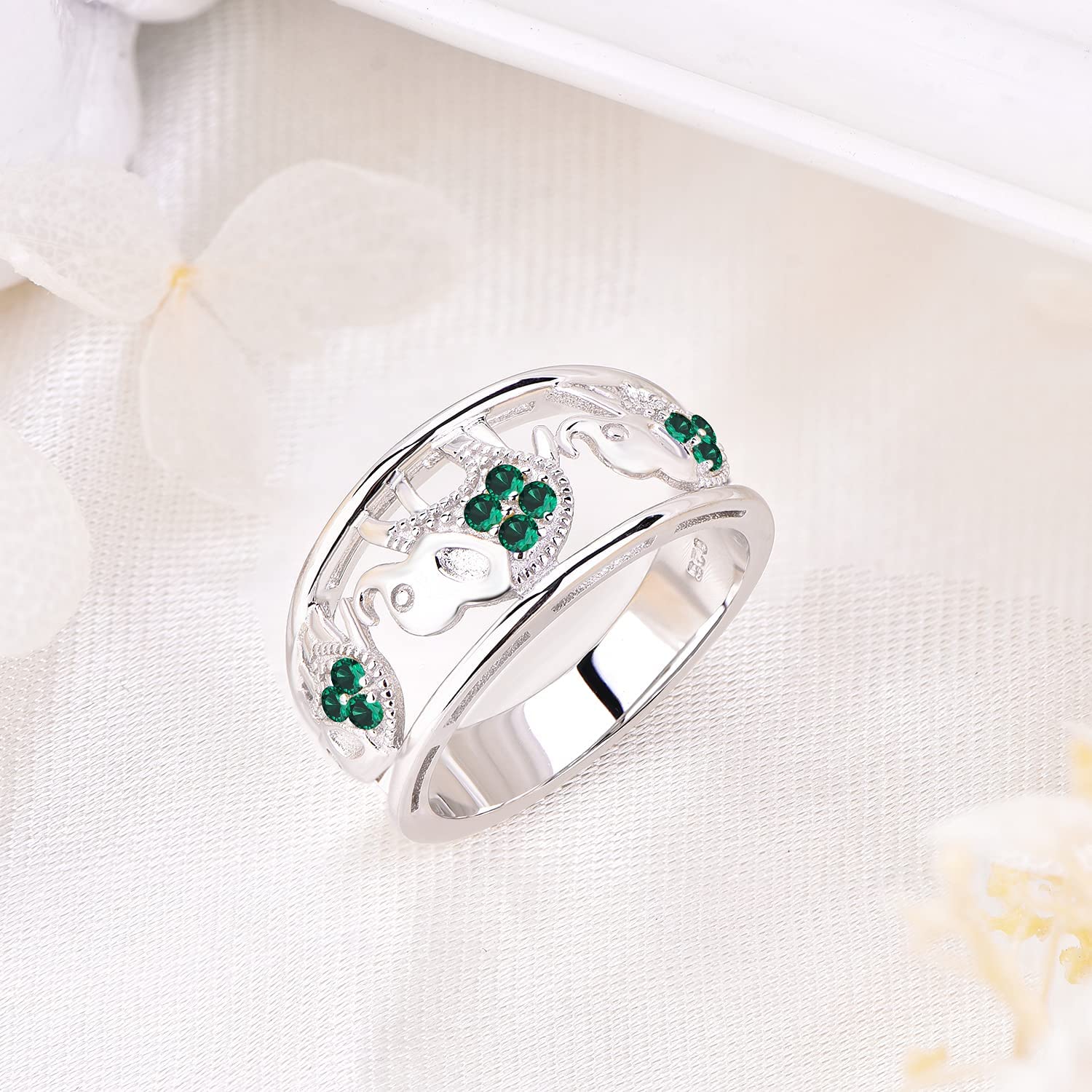 JO WISDOM 925 Sterling Silver Cubic Zirconia Elephant Ring Animal Rings