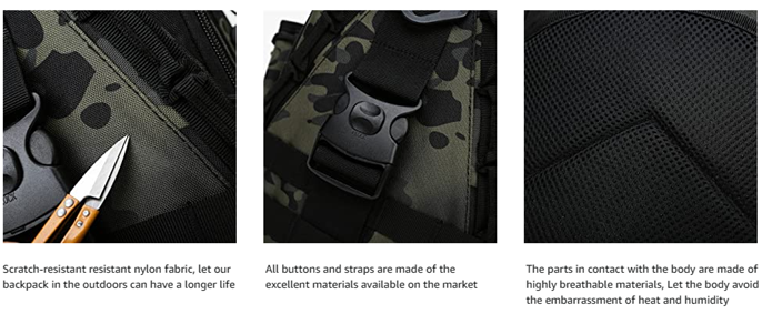 【Excellent Materials】We did not consider cheap materials at the beginning of the design. All the fabrics, zippers and so on are excellent products in the market. This makes our backpacks lighter and more durable