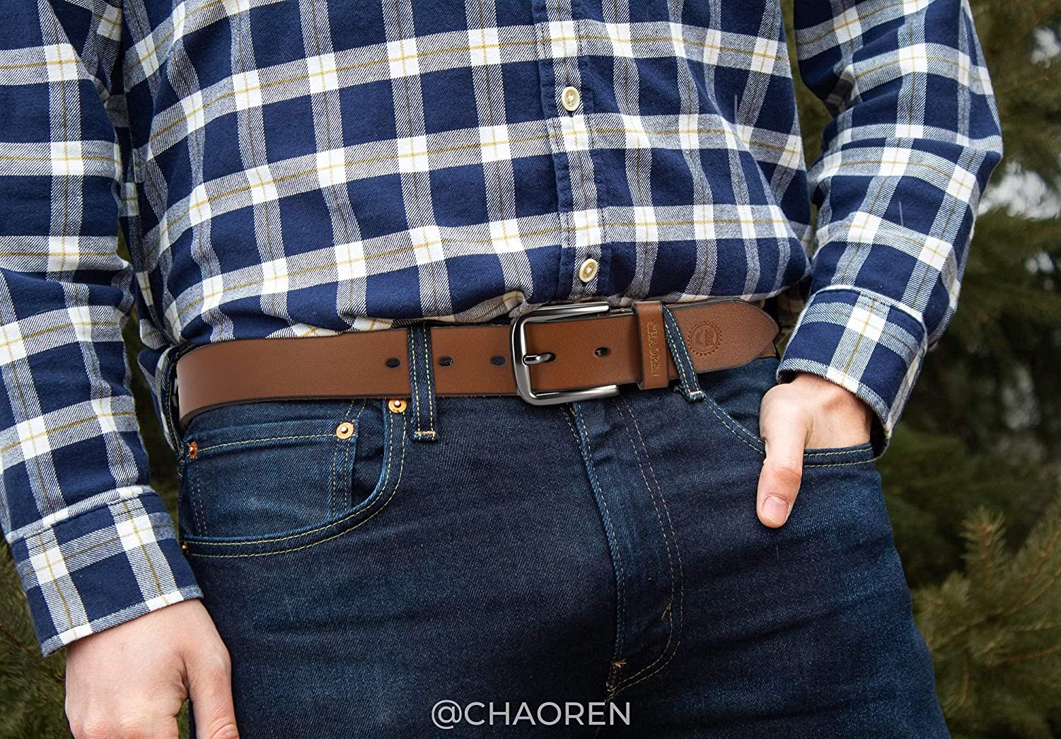 CHAOREN QUALITY - At CHAOREN, we make higher-end thick belts that are designed to great and last long. Order 1 size larger than your dress pant size for the best fit.