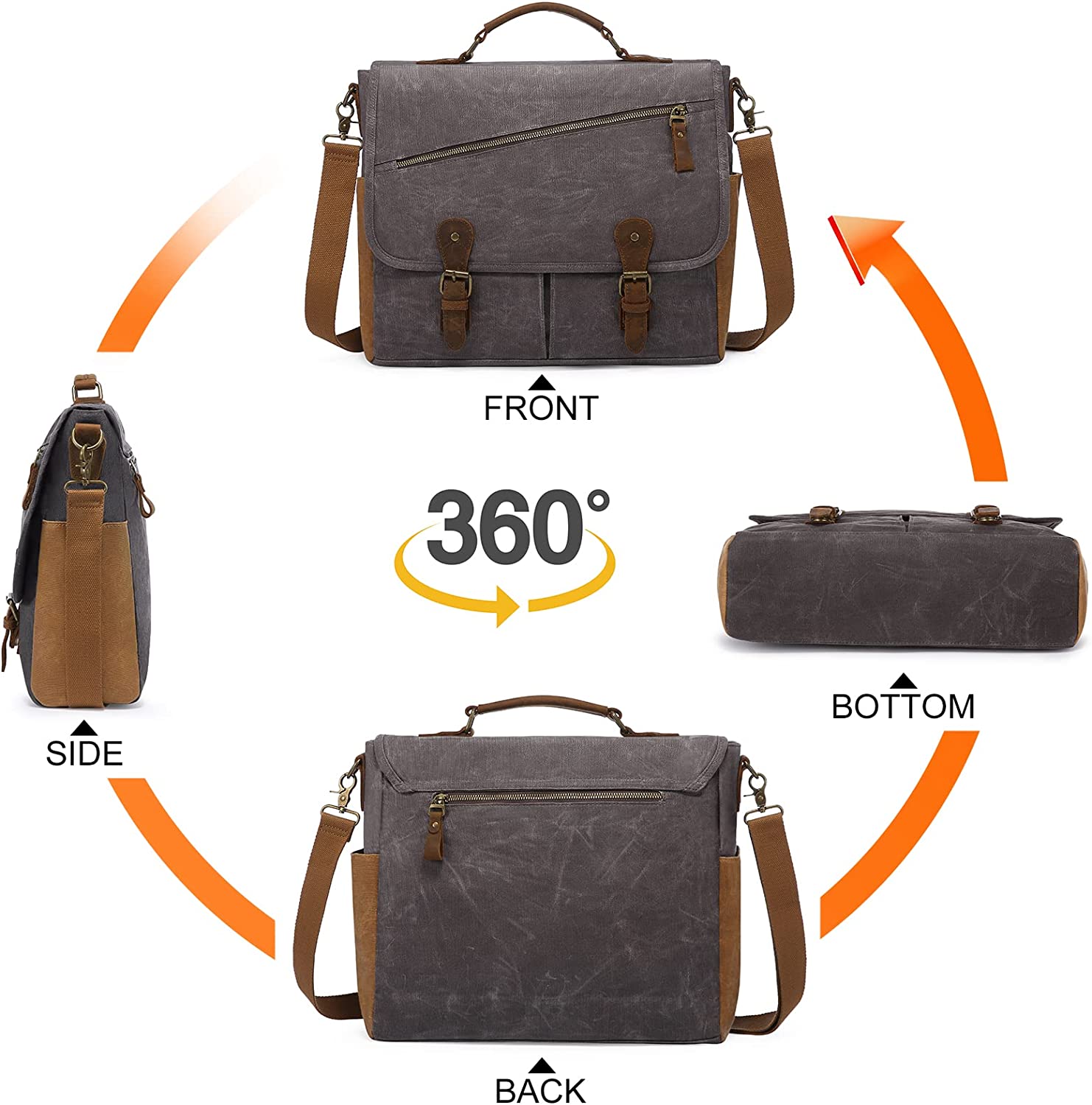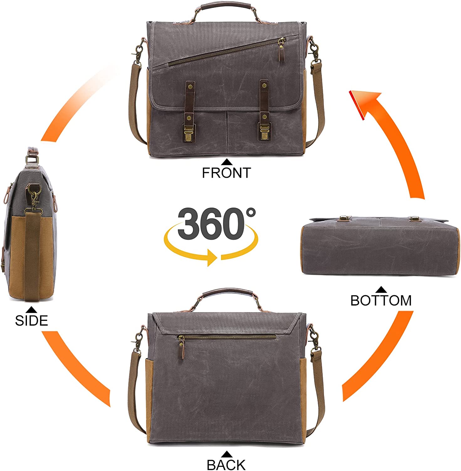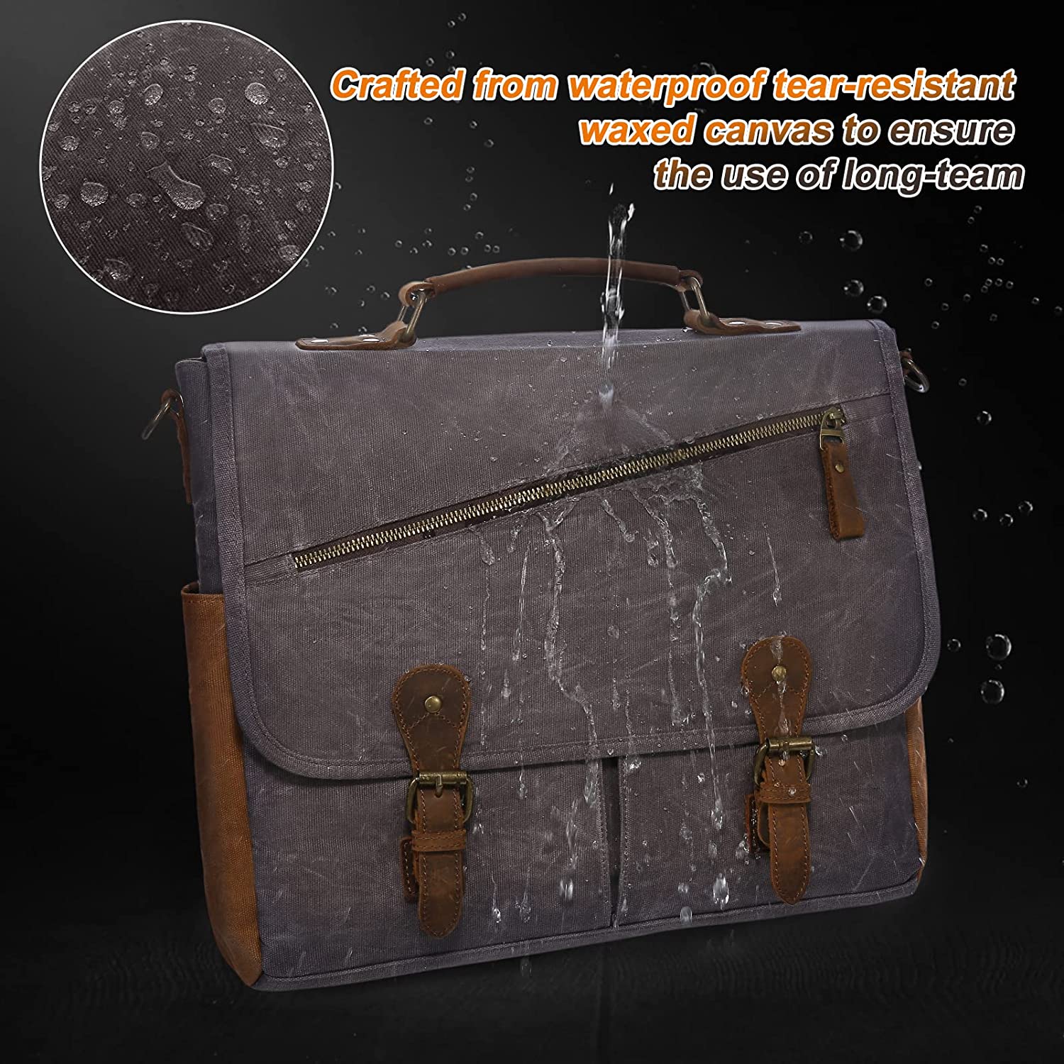LOVEVOOK Mens Messenger Bag, 15.6 Inch Waterproof Waxed Canvas Briefcase Vintage Leather Computer Laptop Book Bag Large Satchel Shoulder Bag for Work, Travel, School