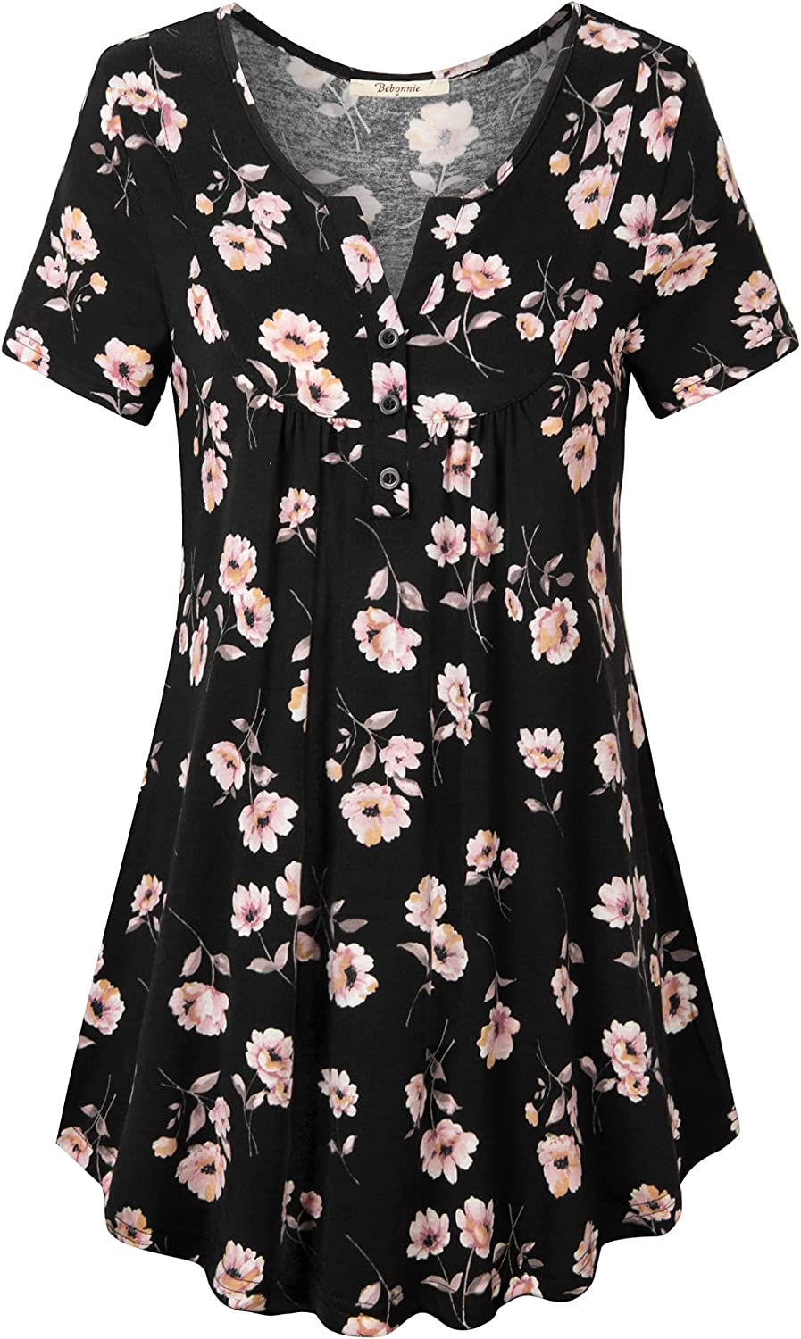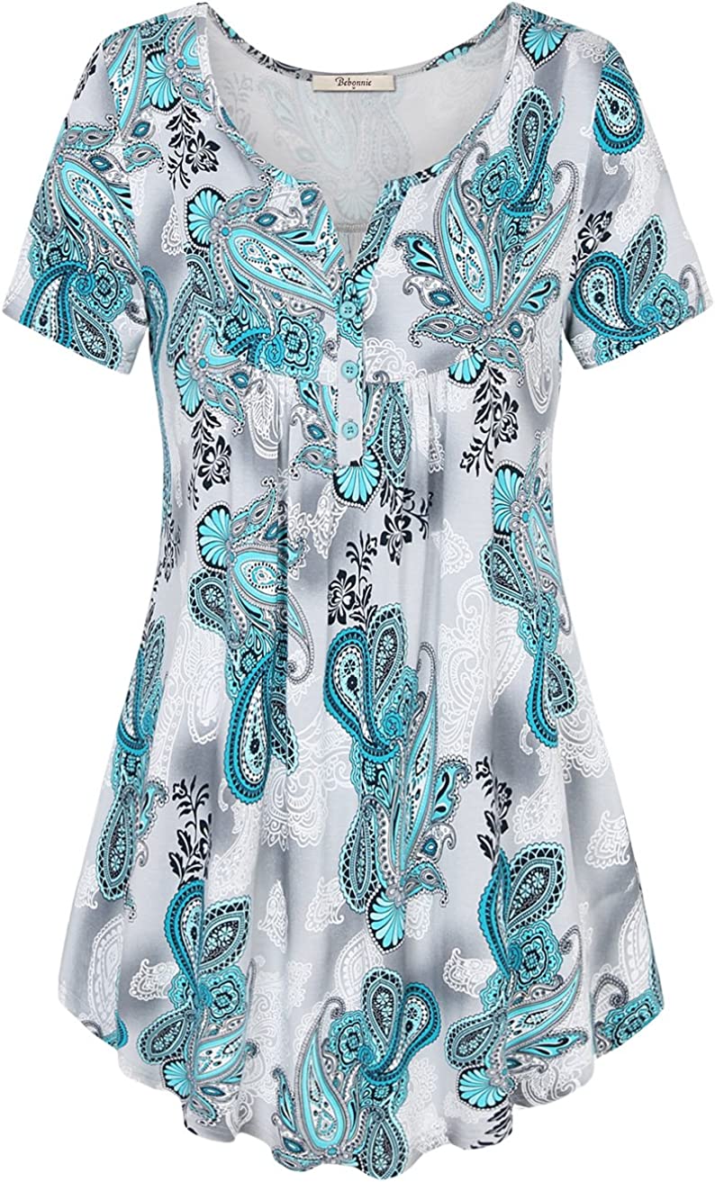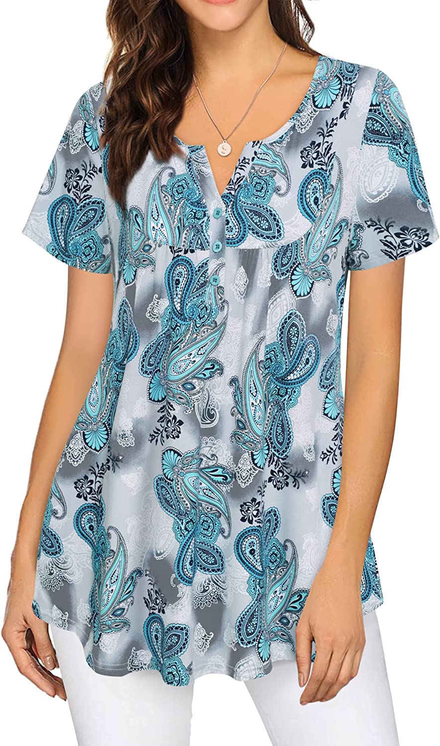 Features: Henley v neck,Button-up,Paisley pattern or solid color, cute front ruffle and flowy hem can perfectly modify the belly, good length can cover hips and easy to pair with leggings, pants and shorts etc, very casual, soft, lightweight and comfortable