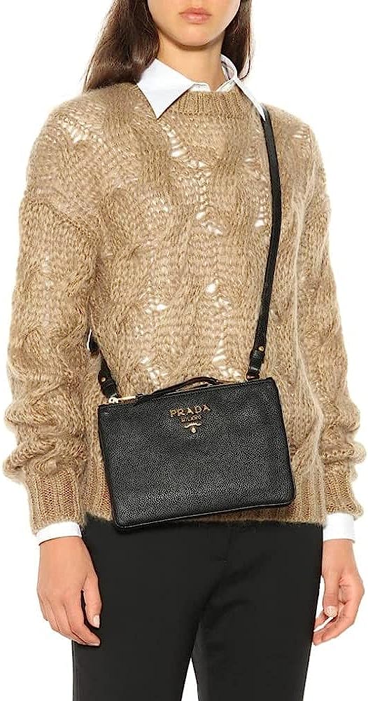 This cute and practical everyday crossbody Prada bag is the perfect accessory to add luxury to any everyday outfit. The double zipper with a center compartment dividing the two zipper pockets give the added feature of tons of space in a small compact crossbody style bag. The color of this bag is beautiful and classic, which makes this the perfect neutral bag for your handbag collection.
