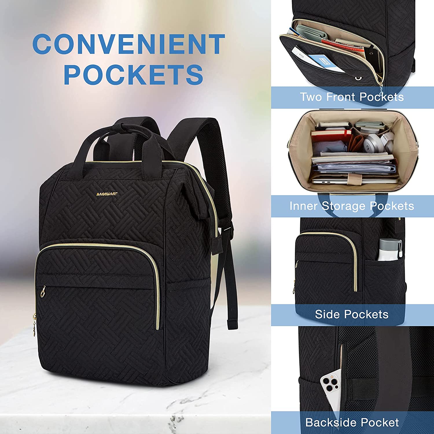 Comfortable Designs: The wide open top of the computer backpack is easier to store and access. Durable top handles and luggage strap for easy transport. Great work bag for teacher, doctor or nurse.