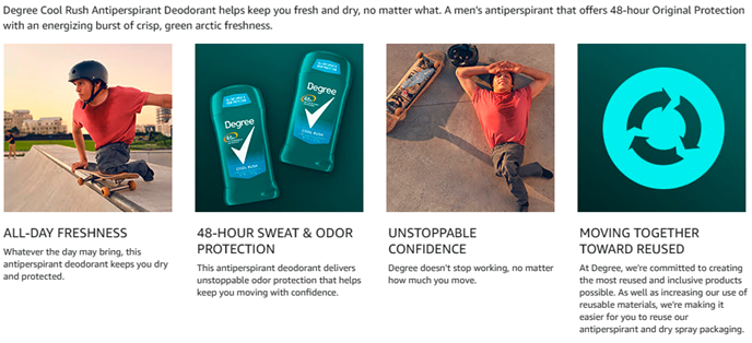 • Degree’s Cool Rush antiperspirant deodorant with 48H non-stop protection, non-stop confidence, making it one of their best deodorant for men that’s strong enough to keep up with you all day