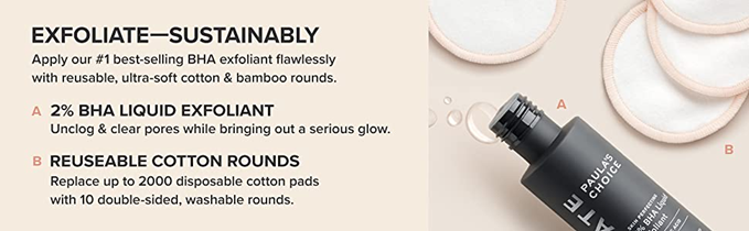 SUSTAINABLE SKIN CARE: Take exceptional care of your skin & the planet with this eco-friendly set. It includes the iconic 2% BHA Liquid Exfoliant & our exclusive Reusable Cotton Rounds to give you a flawless application again & again.