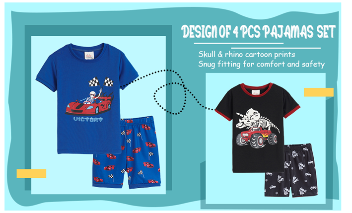 Made of 100% cotton, comfortable and soft,lightweight. For fire safety, These boys pajamas should fit snugly.