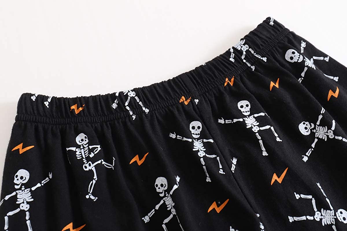 Feature: Special design, glow in the dark. Soft sleepwear top features round neck, short sleeve, pants with elastic waist band, moisture wicking, stretchy, non-slip and painless, easy on/off.
