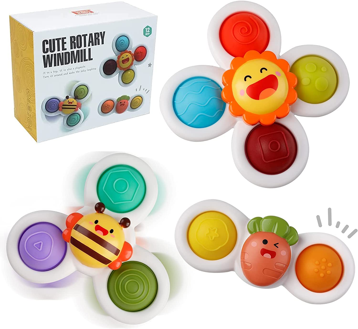 Suction spinner toys for babies: The shape is sleek, non-toxic and durable, use high-quality food-grade soft silicone, it does not contain any harmful substances,which is more comfortable to play, easy to grasp, will not harm children, so your child can play with confidence and cares for the kids tender hands